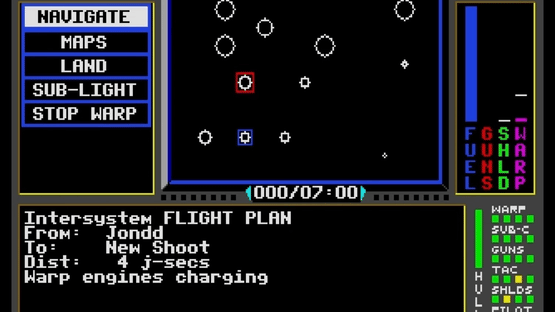 You just inherited a one-man star freighter - the SunDog - from an uncle who died under mysterious circumstances. You also inherited the contract he signed to aid in the building of a colony for a religious group. You have three tasks to perform: find the location of the colony; find, buy, and deliver goods needed for its construction; and locate the cryogenically-frozen colonists needed to populate the colony. In order to accomplish your task, you have to explore different planets and it's cities and travel between several solar systems. You trade goods in the hope of making a profit while space pirates and muggers are a constant threat to your efforts to free yourself from a life in slavery in some godforsaken mines somewhere in space.