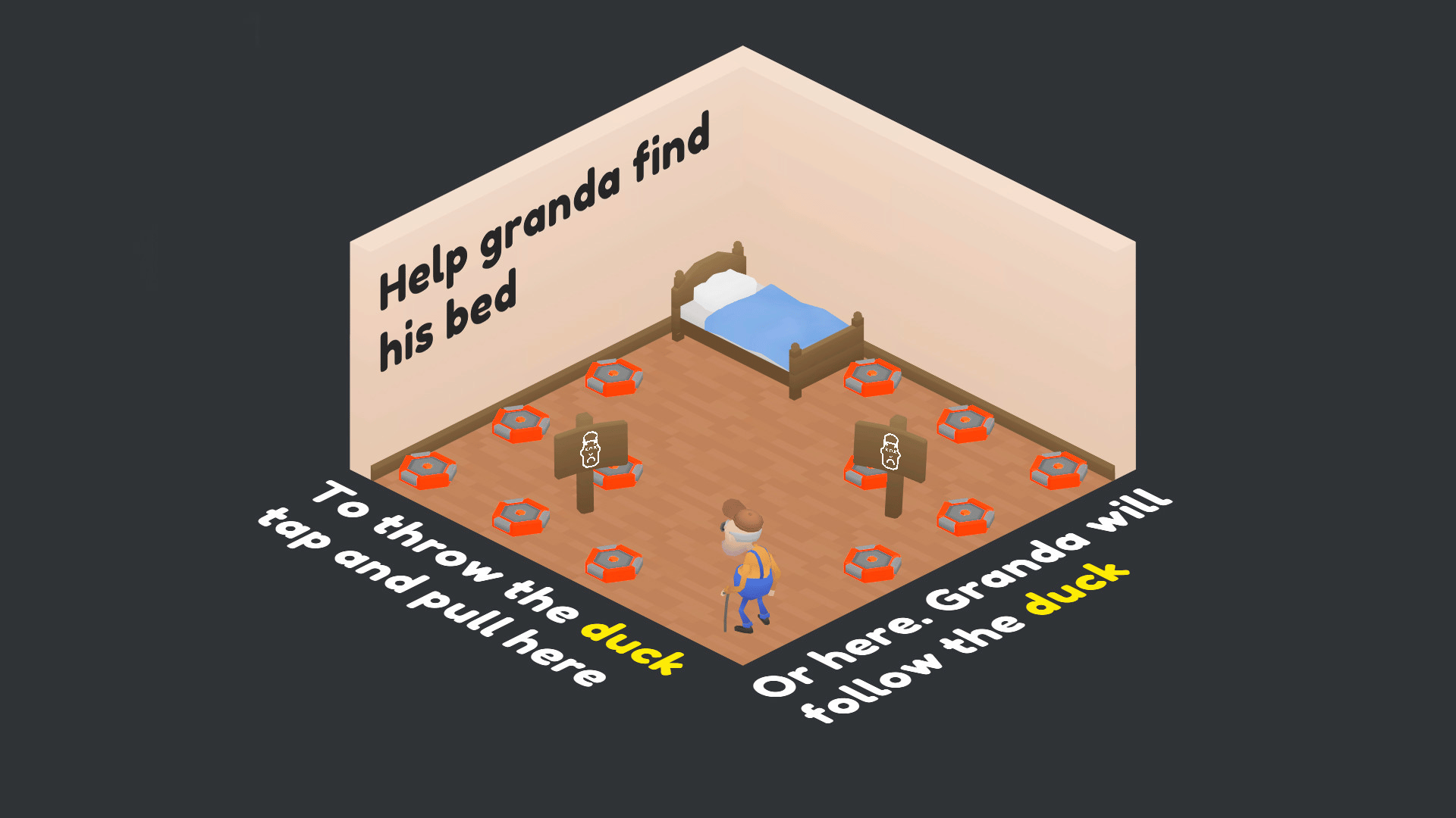 Help blind grandpa find his bed by throwing quacking ducks. Be careful, he is paranoiac, and his house is full of deadly traps!