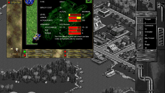 Description The battle for planet Nu Haven lasted just three months Earth Standard Time, and the cost in lives on both sides was staggering. Mankind had just been rudely awakened from a dream that it was alone in the universe. Now the greatest military force ever assembled is about to be put at your command, your objective: to liberate planet Nu Haven and prevent the impending invasion of Earth. The most advanced weapons of the 24th century are at your disposal: dorships, heavy tanks, aerial bombers, dreadnoughts, and submarines - 45 different units in action on the battlefields.