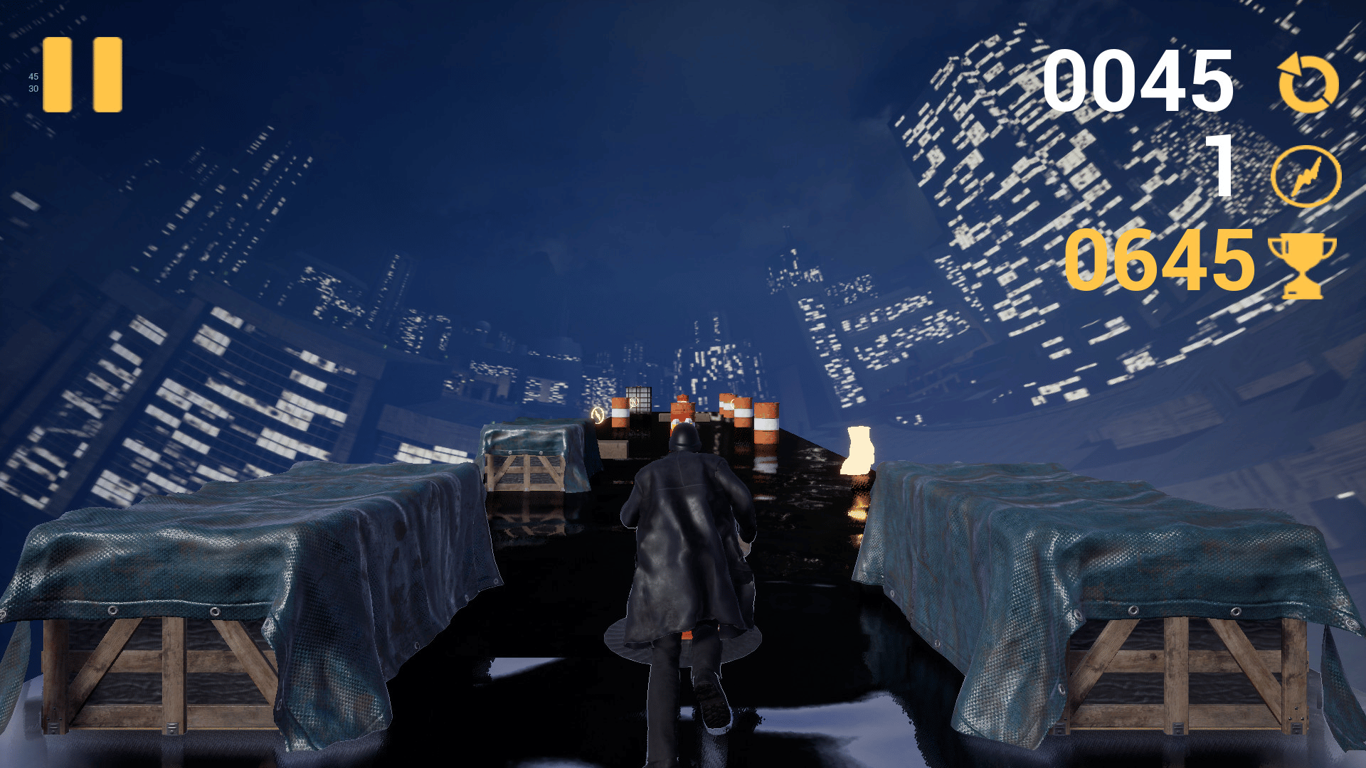 Stay alive in CityRunner as you take to the streets of the city, a challenging Near Future Sci-Fi based Platform-Style Runner game. Set the highscore by collecting pickups and powerups and staying alive as long as possible to gain the high-score.