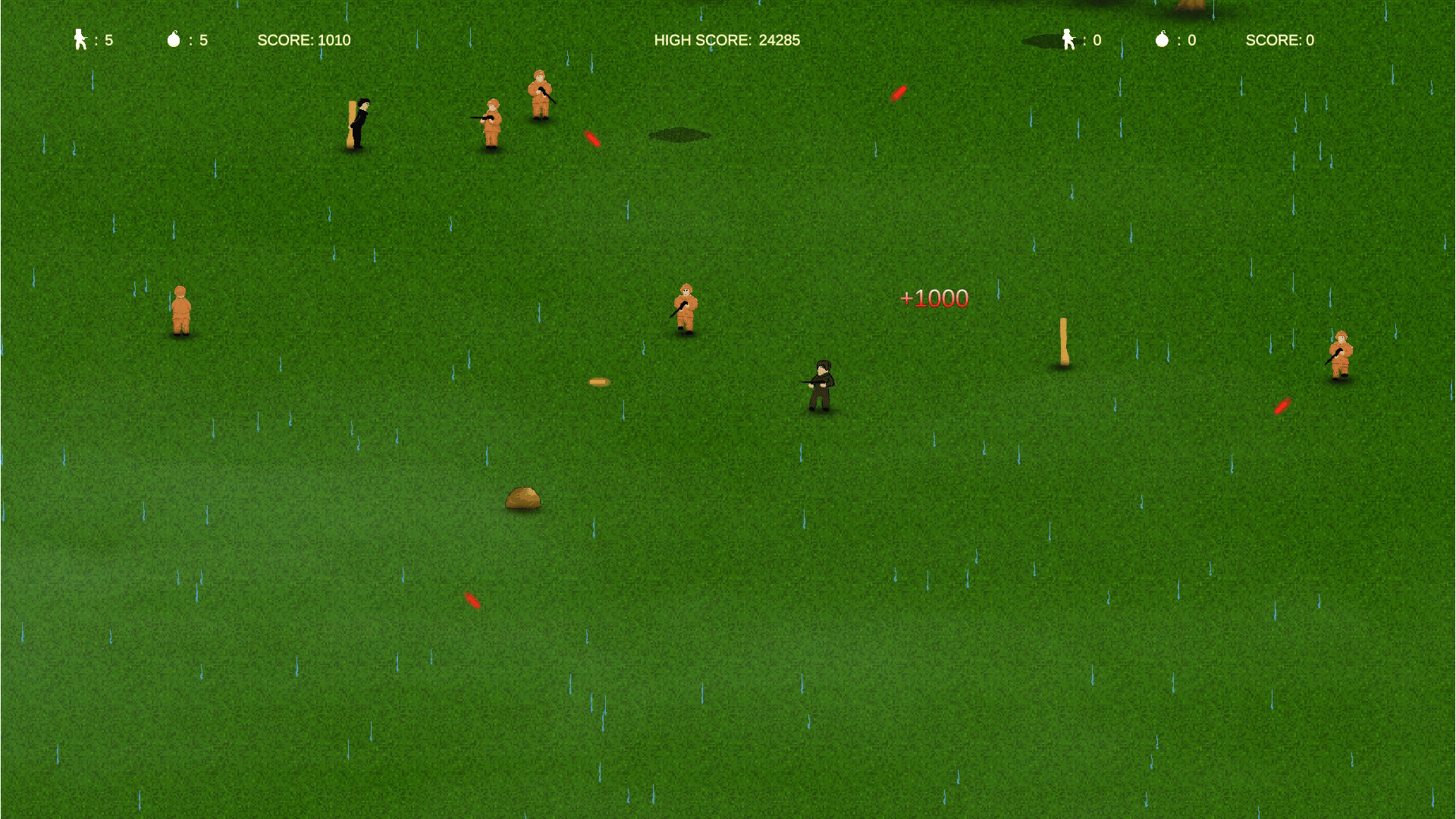 Take on an entire army in this 80s inspired retro top down vertical scrolling shooter. Be a one man war machine or take a friend into battle for some fun 2 player local co-op.