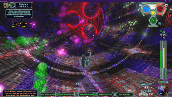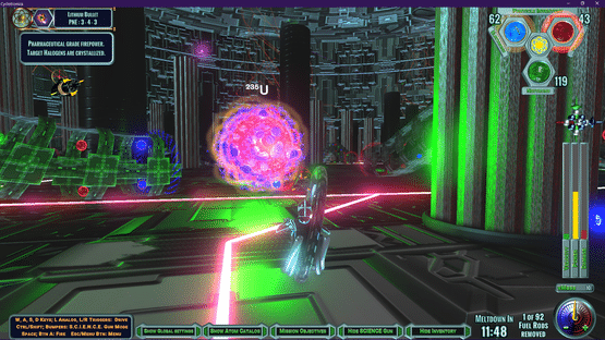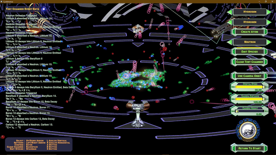 Race through high energy reactors and particle accelerators as the infinitesimal "Mr. Big", riding an ultra-high tech monowheel cycle, collecting particles, conducting experiments, dodging and doing battle with antimatter and radioactive isotopes, solving puzzles, and discovering the Periodic Table.