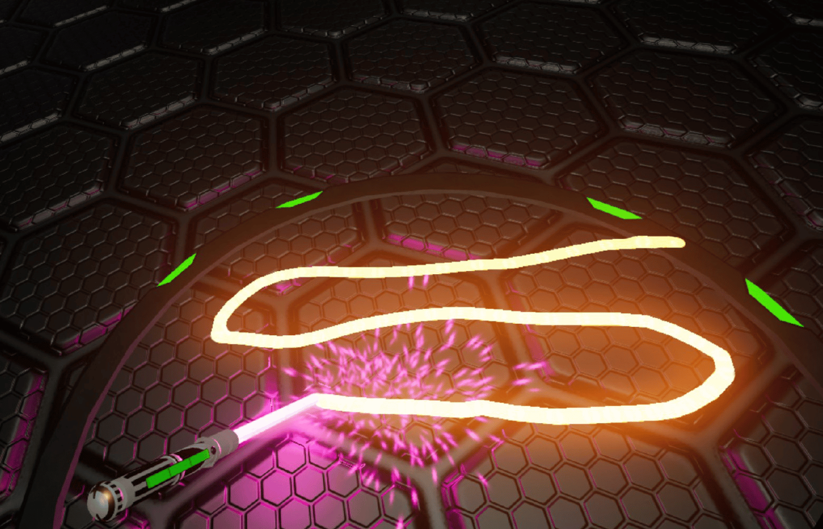 Ready your plasma blades and face off against wave after wave of incoming beams as you struggle to survive at ever increasing speeds.
