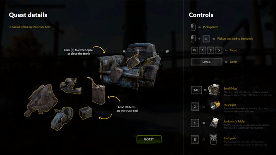 The Prologue of Junkyard Simulator gives you a teste of experience of Junkman's life. You'll be sniffing around, collecting items, visiting the scrap market, and carring out a full renovation of car parts and home appliances. Driving a truck and beating a Junkyard Challenge is the icing on the cake.