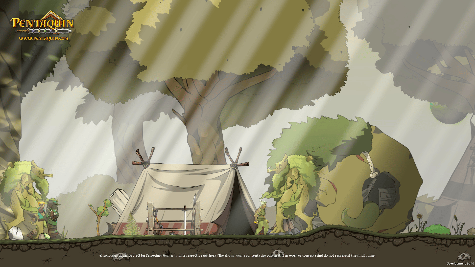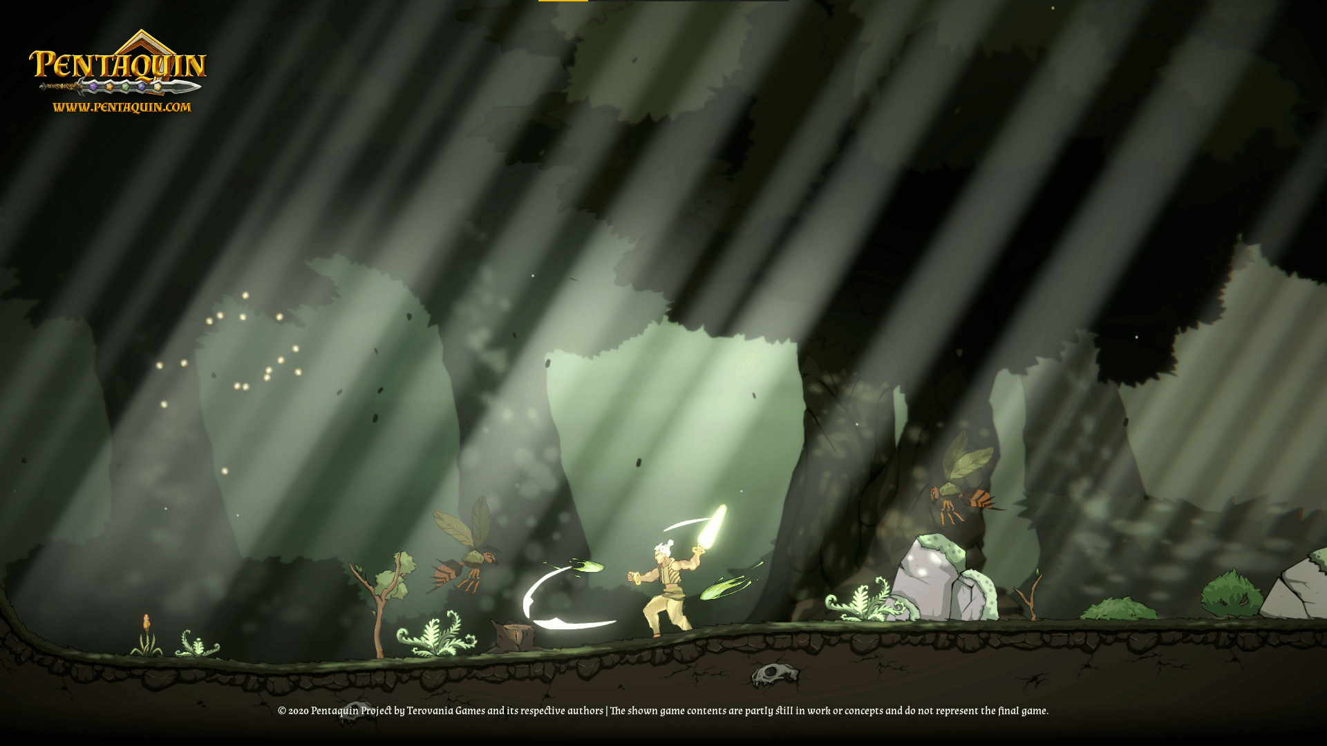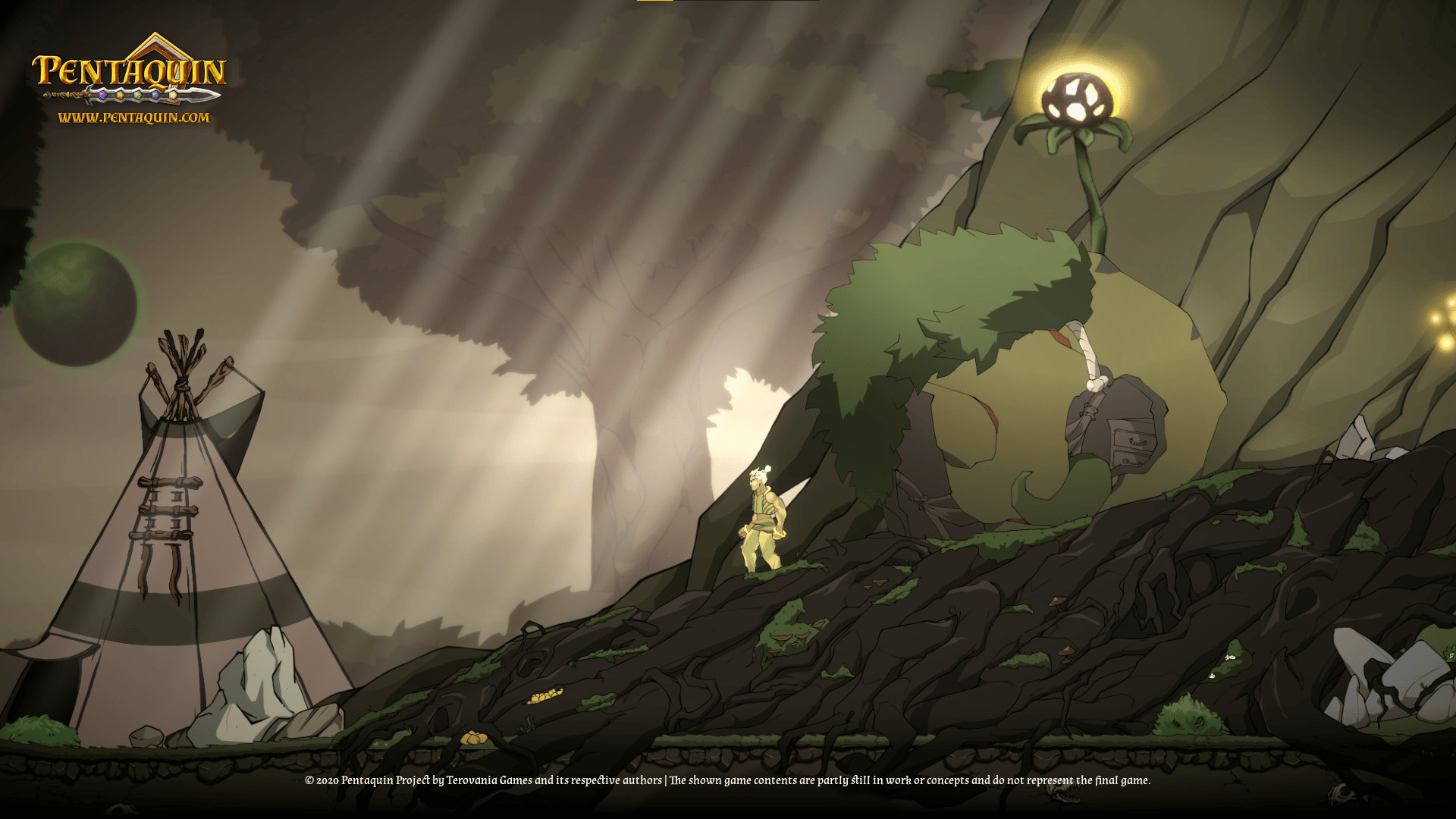 Pentaquin: Deeds Of Twilight is a hand-drawn 2D-Platformer Game, combining beautiful art and music with a deep, dark story all about re-uniting your broken family in a world shattered by war.