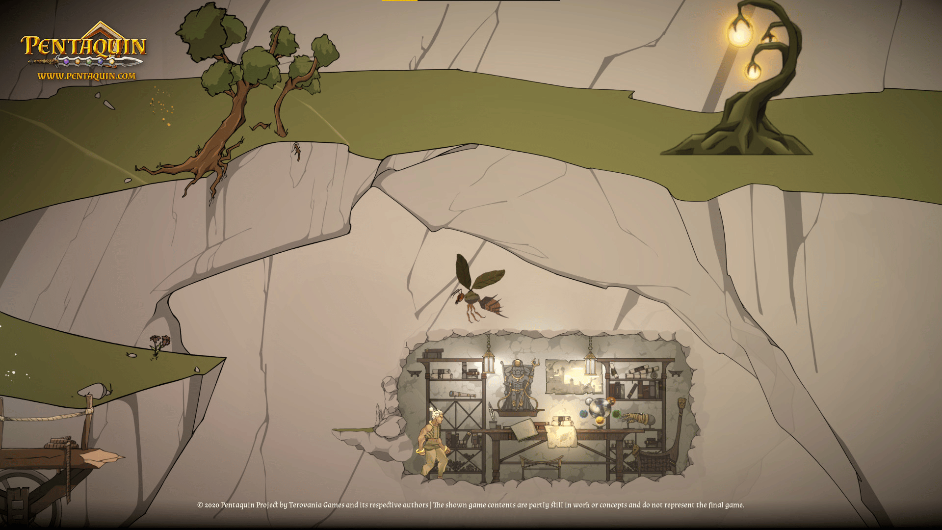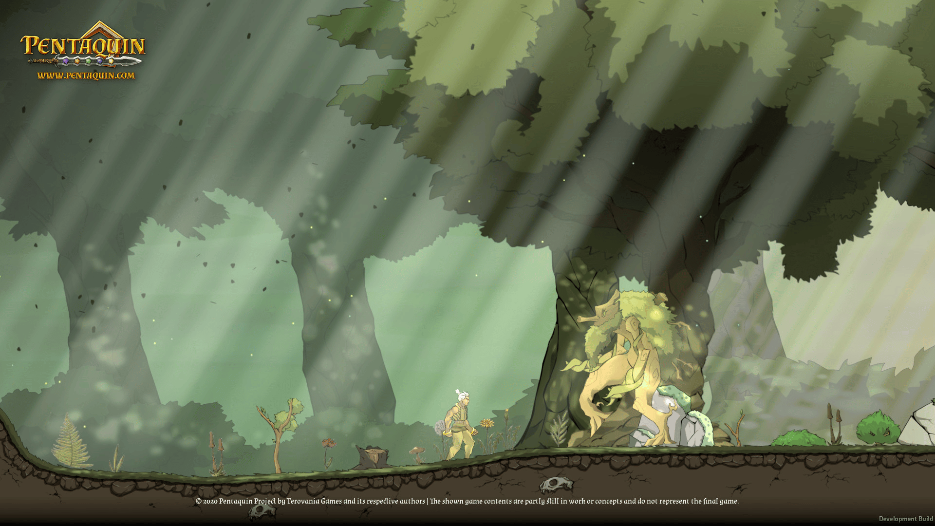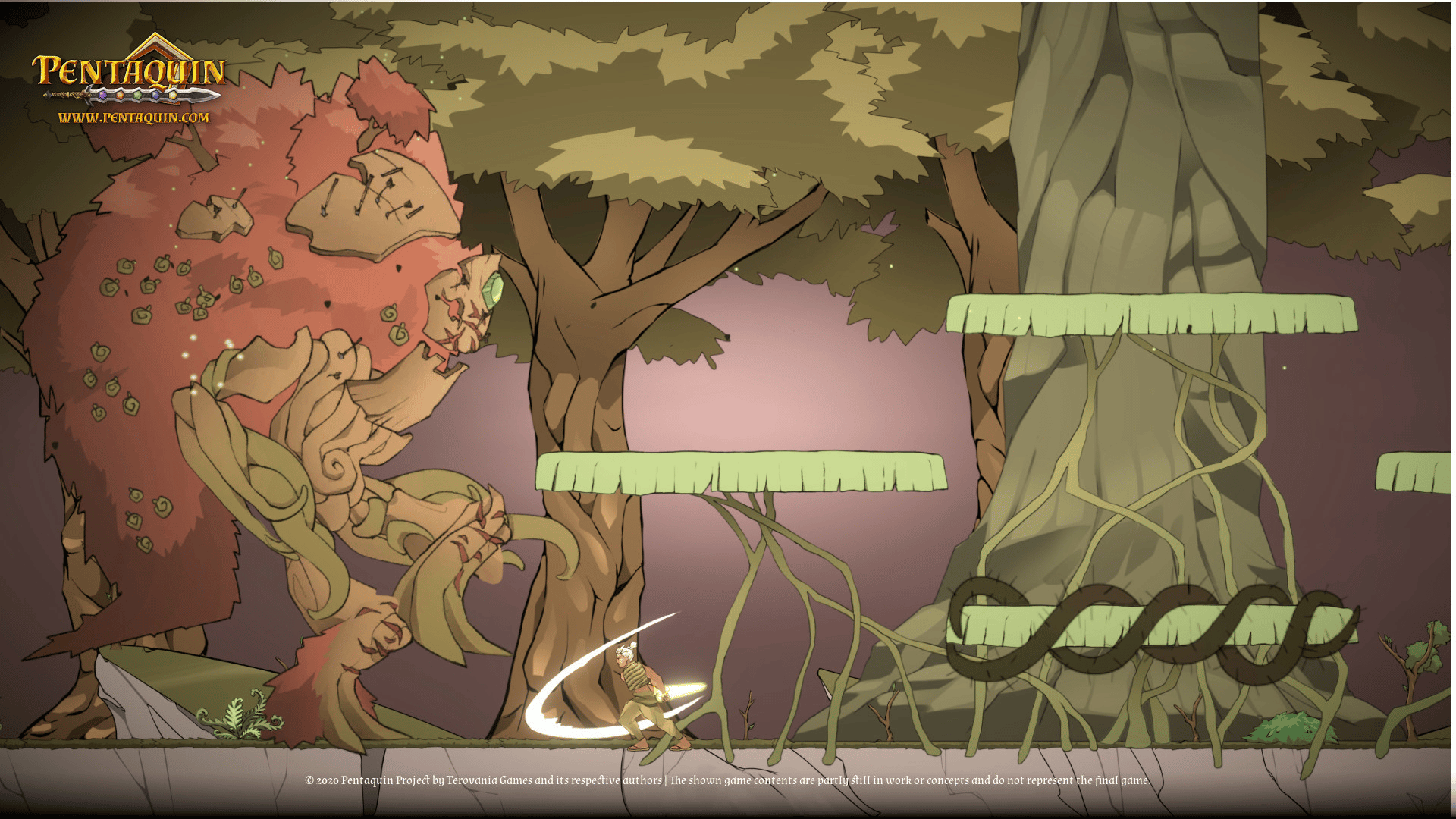 Pentaquin: Deeds Of Twilight is a hand-drawn 2D-Platformer Game, combining beautiful art and music with a deep, dark story all about re-uniting your broken family in a world shattered by war.