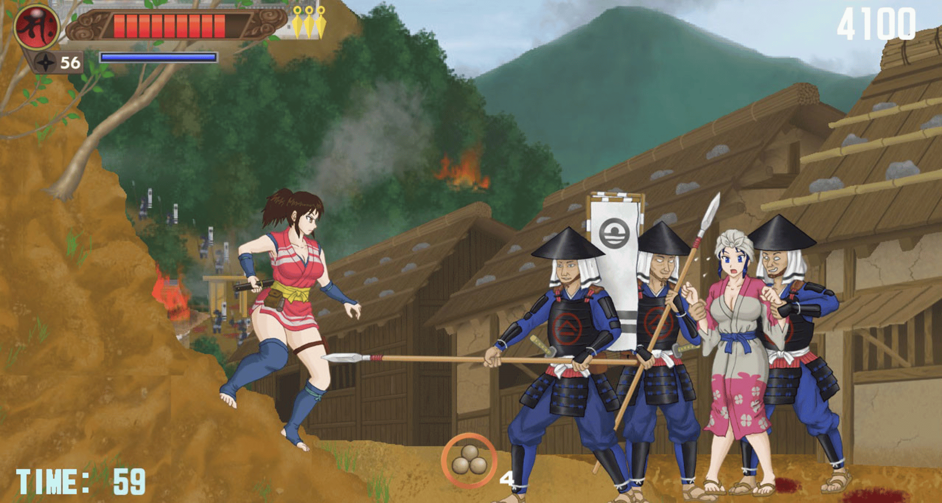 A full-scale action game in which one Kunoichi fights against ninjas and necromancers during the Warring States period.