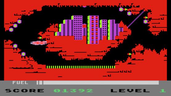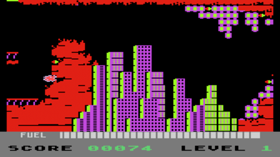 Sidewinder is a side-scrolling shooter. The player assumes the role of the only survivor of a team of agents sent to capture the Sidewinder helicopter. As a pilot the player must escape through the caverns guarded by an enemy security system. The advanced Sidewinder technology costs a lot of fuel consumption. To refuel the helicopter, the player must shoot the fuel pods scattered in various places throughout the caverns. To advance to the next level, the player must reach the landing pad at the far end of the cavern.