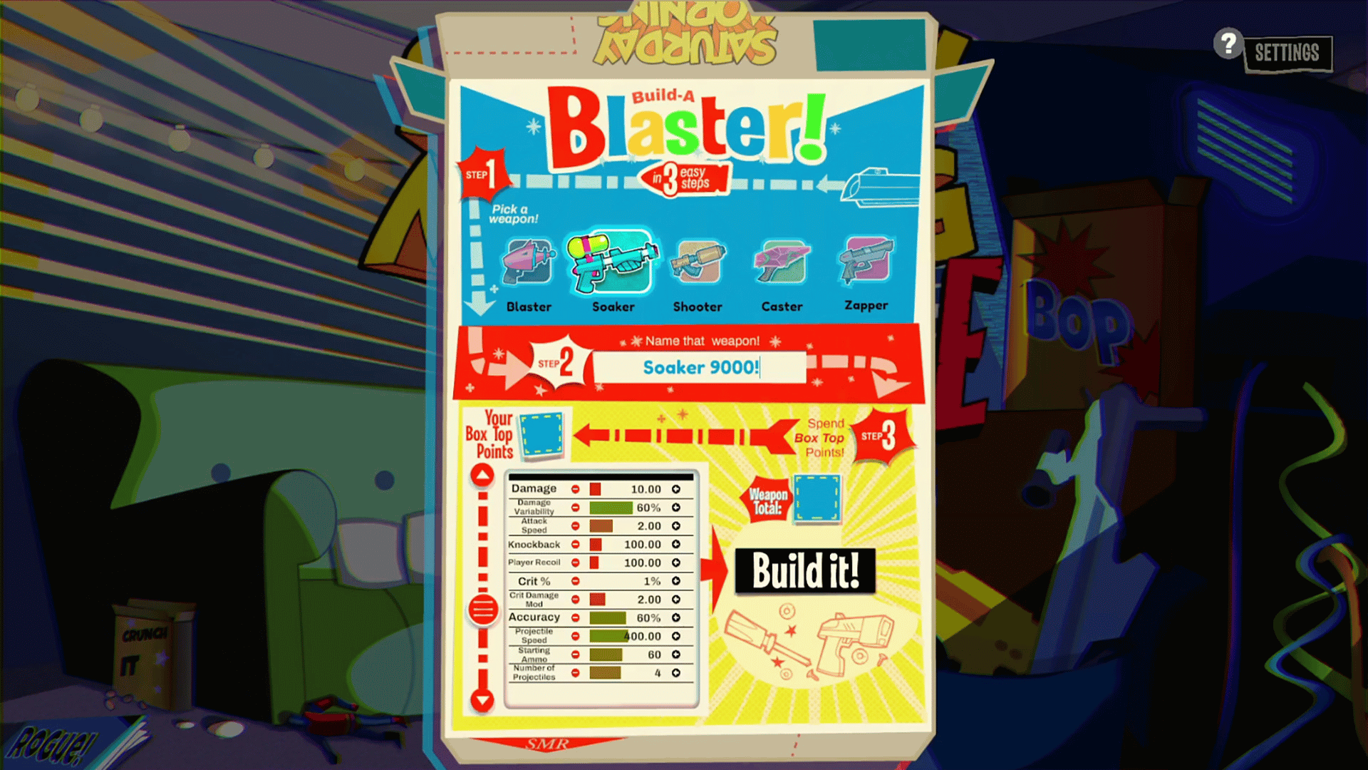 The top-down 2D rogue-like where you fight through infinite levels with your own custom built weapons. Beat your hi-score with the ultimate weapon, or a dud that should never have left the toy aisle.