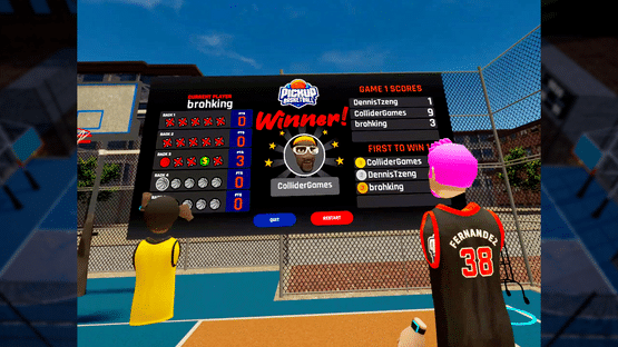 Pickup Basketball VR is a multiplayer VR game that lets up to 4 players play in various game modes including 1 v 1, 2 v 2, Horse and 3-point contest. Pickup Basketball VR allows players to compete online with or against friends and players from across the world.