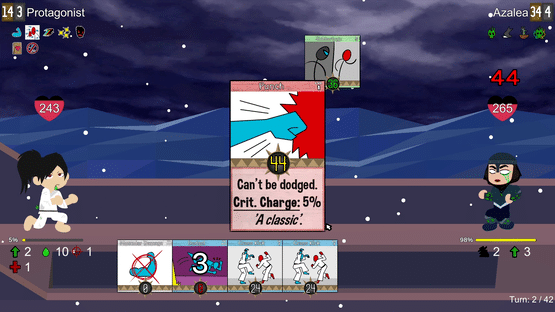 A heavily anime-inspired deck builder. You play as one of the participants in the Tournament Ark, a combat tournament held on an interdimensional boat. Pick the right moves, choose the correct passive abilities for your build and combine the right cards to become the champion!