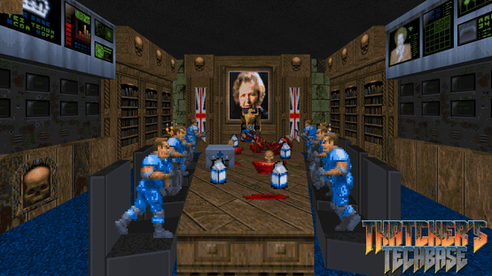 THE DEAD SPEAK! The world has heard a mysterious broadcast, a threat of revenge in the sinister voice of the late BARONESS MARGARET THATCHER. Faced with the return of one of humanity's greatest threats, you have no choice but to head to THE TENTH CIRCLE OF HELL: THE UNITED KINGDOM OF GREAT BRITAIN AND NORTHERN IRELAND And investigate the underworld fortress known as... THATCHER'S TECHBASE!