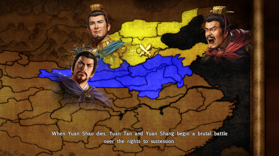 The balance of powers shifts in Cao Cao's favor after his victory at Guandu. Yuan Shao makes another unsuccessfully attempt against him, but soon succumbs to an illness. While Yuan Tan and Yuan Shang fight for the right of succession, Cao Cao seizes the opportunity to invade Ji.