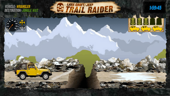 Trail Raider is a promotional flash game for Tomb Raider and Chrysler/Jeep, coinciding with the release of Tomb Raider: Legend. The game utilizes an easy to play adventure game that demonstrate new Jeep four wheel drive technologies in the new '06 models as well as leveraging the Tomb Raider and Lara Croft brand. The game has three levels. On level 1 the player drives Jeep Wrangler, Level 2 has Jeep Commander, and on level 3 the game lets the player choose the Jeep vehicles. The goal of the game is to finish the levels as fast as possible.