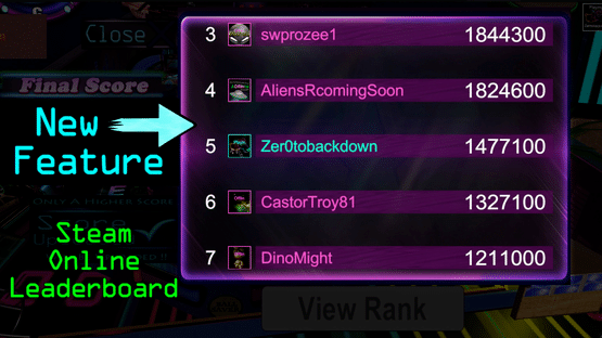 Neon Nights Pinball is an exciting eight flipper table featuring two upper play fields supporting seven primary missions, two skill shots and multi ball. This cyber punk styled machine blasts a nine minute custom soundtrack that will keep the action rolling. Now with Steam leaderboard support!!