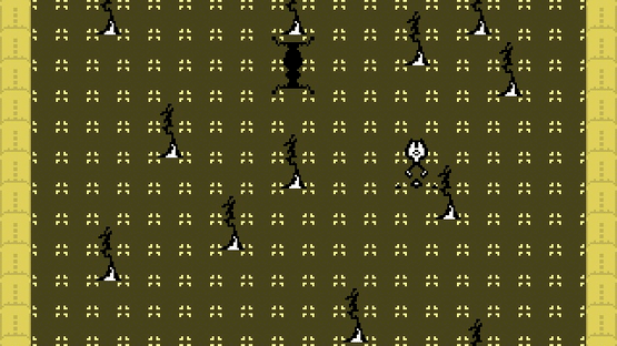 A bizarre role-playing game in an alien landscape where every text consists of unreadable lines and dashes.