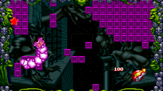 Glass is the follow-up to Splash! with similar gameplay. Aliens once attacked Earth and now the humans travel to their planets to take the fight to their worlds. One of two players, working together, control a space ship in fixed-screen stages filled with blocks. To win a stage all blocks need to be removed and this done by moving over them. Meanwhile aliens spawn from different directions and roam around. Some of them can also fire while other have special abilities such as leaving behind bombs or restoring the blocks. The player's space ship can shoot bullets (now an unlimited amount unlike in Splash!), but not all enemies can be defeated. It is also possible to leave behind dynamite as a bomb or active a shield for temporary invincibility. Defeated opponents drop coins for extra points, additional bombs, a new primary weapon or energy to restore the shield. The ship can be steered in eight directions and a single credit provides three lives. There is also a time limit per level. The game contains eight worlds with four stages each. The last stage is always a boss fight against a strong character and there are no blocks to clear. In addition the player is rewarded with a nude or revealing picture of a man or a woman. The picture is already teased after completing the first three levels, but with some black blocks covering parts. Only when the boss is defeated is the picture revealed in full. At the start of the game the player chooses between Boys mode or Girls mode to determine the gender of the people in the pictures.