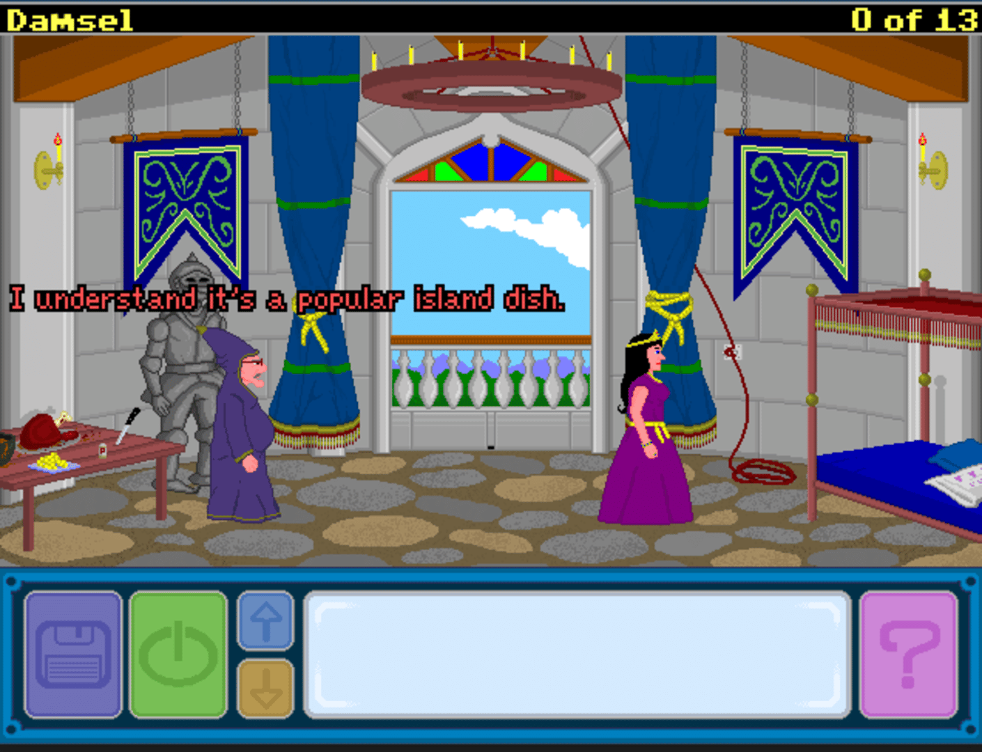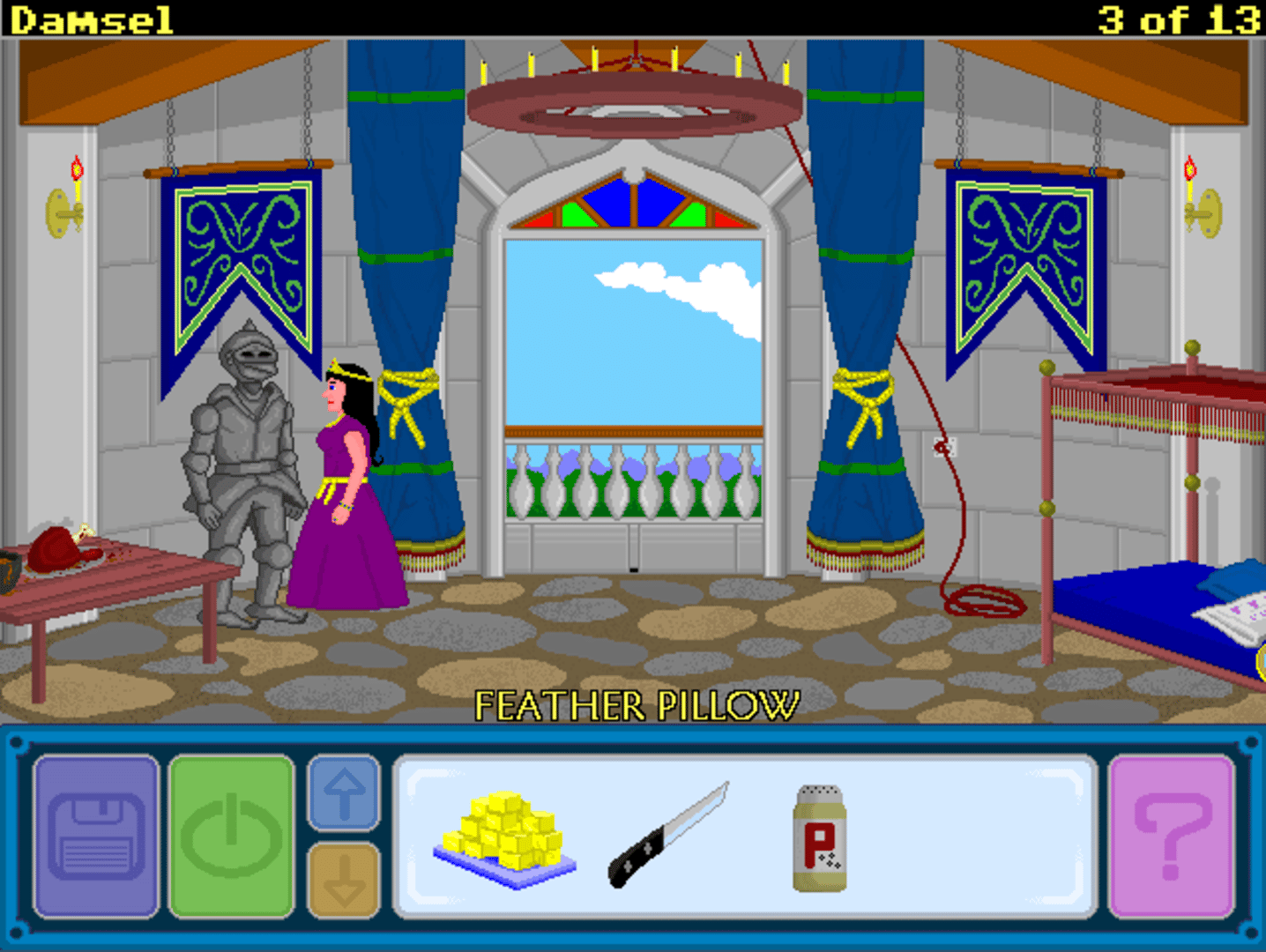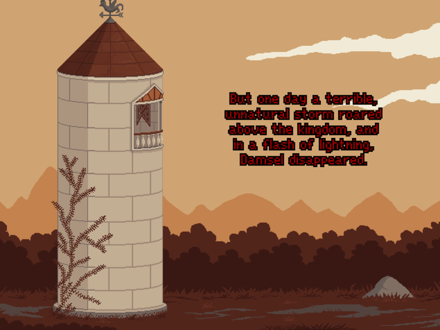 Poor Damsel...her life was so perfect back at the castle, riding her pony, brushing her hair and visiting the spa. But now her royal princessliness has been kidnapped by the quasi-evil, fat little middle aged wizard Dorkus, and trapped high in a tower with no doors! She's held out as long as she can, but if she doesn't escape tonight, Dorkus will force her to marry him! What's a girl in distress to do? Well, wait for rescue, obviously. But when rescues go wrong, Damsels must do it for themselves! Damsel is a short comedy adventure game, with full voice-acted dialogue. We hope you enjoy it, we had some really talented performers for it. :)