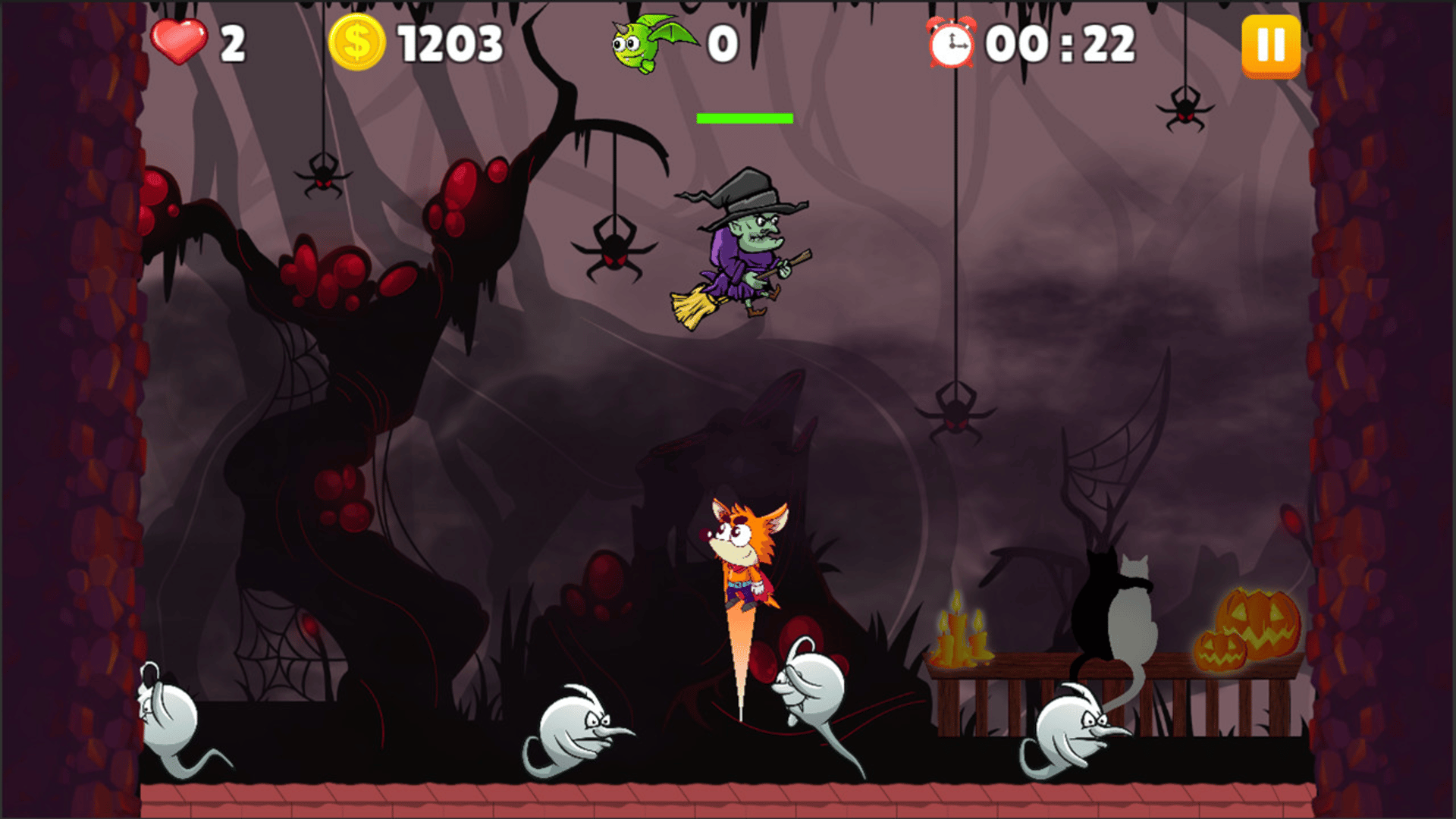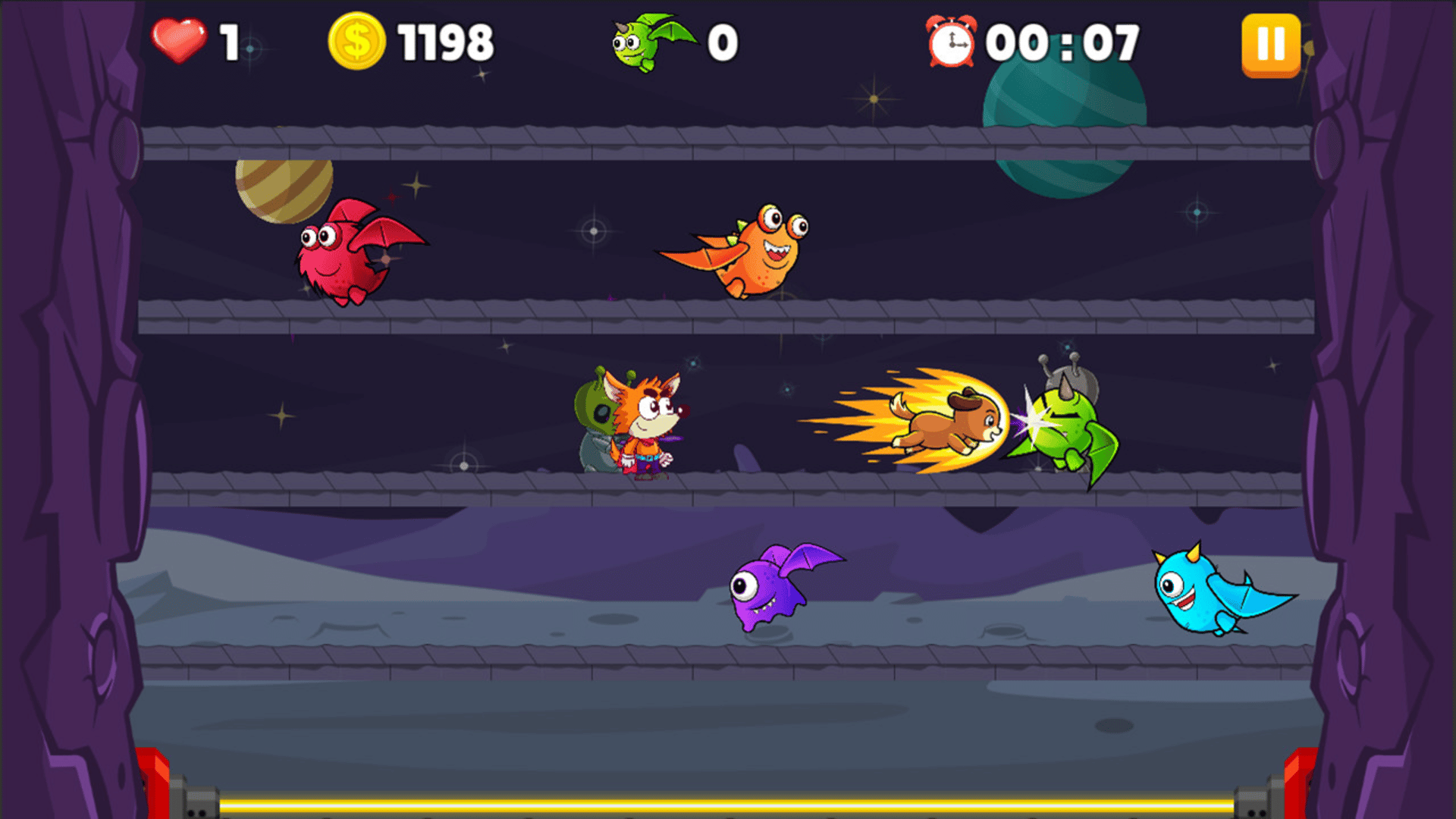 Action game in which you teleport between platforms, pick up power-ups, and shoot all the monsters you encounter along the way.