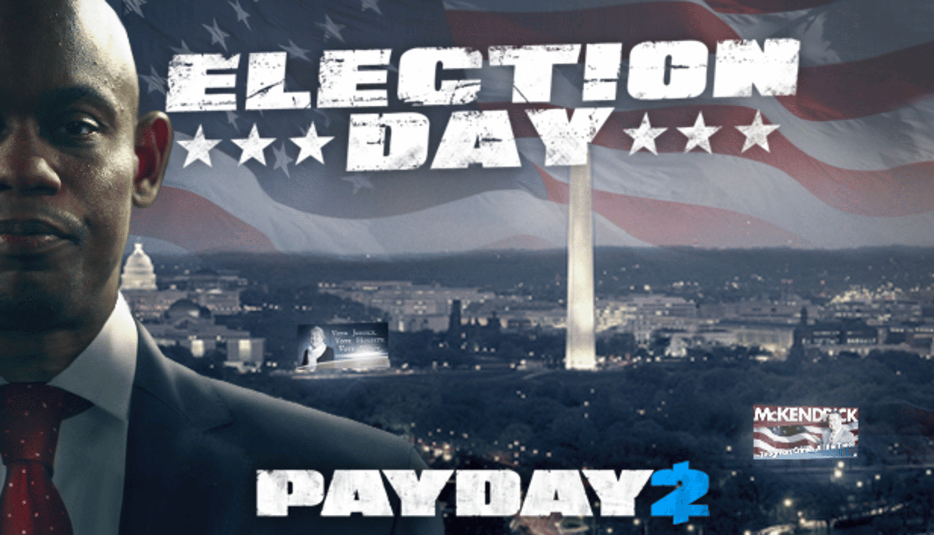 The Election Day Heist is the third free heist update to PAYDAY 2. It allows heisters to take a new contract from the corrupt politician the Elephant called the Election Day job. A free pistol weapon, skill changes, a big stealth update and new assets have been added.