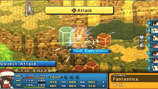 Wild Arms XF is a 2D turn-based tactical role-playing game, creating a gameplay experience somewhere between Dungeons & Dragons and chess. Players are given control of a small squad of characters (six or less) and placed on a grid-based map resembling a geographical location (a swamp, a town, a river), upon which they fight battles to progress through the game. As with most T/RPGs, positional advantage can be critical to victory, and players are encouraged to outmaneuver their enemies as well as outgun them. The game emphasizes positioning and maneuvering by the inclusion of "Formation Arts," which increase attack damage when an enemy is surrounded by your characters in a line, a triangle or a circle. Wild Arms XF is a member of the small subsection of T/RPGs whose battlefields are based around hexagonal tiles instead of squares. "Combination Arts" return from previous Wild ARMs titles, allowing characters to target an enemy in a waiting state and then deliver their attacks simultaneously with the next ally to attack their target. If the player succeeds in executing an uninterrupted series of commands, the damage inflicted upon enemies will increase significantly. On the other hand, the enemy gets the same advantage.