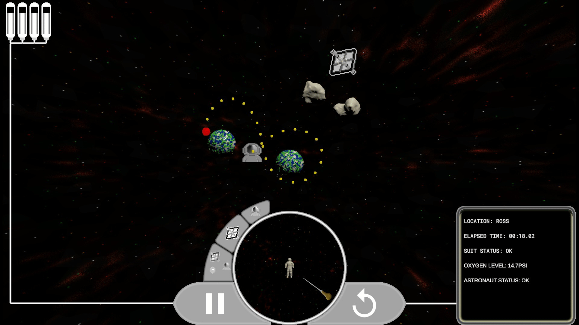 Save stranded astronaut, don't let him crash to the planet surface or suffocate in endless space! Fun and brain-teasing puzzle game will challenge you with lots of levels from easy to super tricky problems for you to solve.