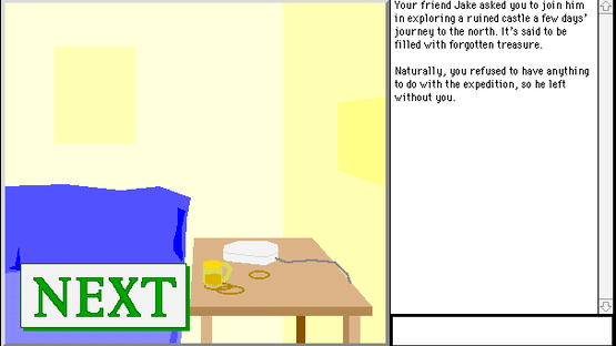 You're no hero, so when your friend Jake asks you to join him in exploring a ruined castle several days' journey to the north, you refuse to have anything to do with the idea. Well, that was weeks ago, and you haven't heard from Jake. Much against your better judgement, you decide to go find out what became of him...and maybe pick up some treasure along the way.