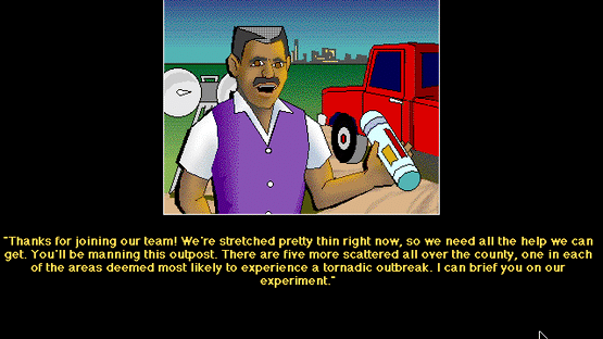 Twisted! Deluxe is an updated, full-color version of Twisted!, an excellent shareware adventure game for the Macintosh by Ray Dunakin. The original Twisted! was a fun text-adventure-with-graphics game coded with World Builder, a now-discontinued adventure game application for the Mac. This Deluxe version features all-new color graphics and a streamlined point-and-click interface in place of a text parser. Twisted! Deluxe starts out similar to the movie of the same name: you are a meteorologist, a "storm chaser" sent to investigate a tornado. Before long, you end up in Land of Ooz, a bizarre fantasy world filled with talking dragons and other strange creatures, and numerous fascinating puzzles that range from math logic, to riddles and traditional inventory-based puzzles.