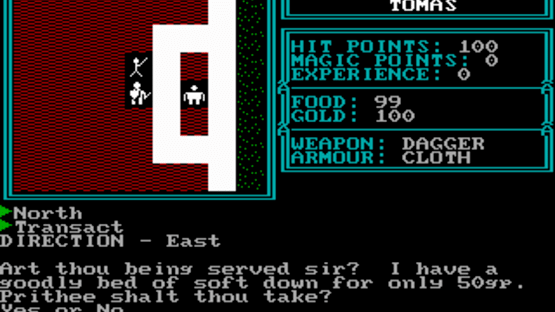 The Kingdom of Syree is a RPG based on the novels by Lord Steven and heavily inspired by the earlier Ultima games. After many years of peace evil is threatening the kingdom of Syree: an evil wizard wishes to conquer the kingdom. None of the kingdom's great heroes have returned from their search for the wizard, and now it is your time to search for him and kill him. The screen is divided into three parts. To the upper left is the game area where all the action takes place. To the upper right is the status area where you can see your equipment, health and wealth, and at the bottom of the screen is the message window where conversations and such will show up. The game features lots of exploring and monster killing.