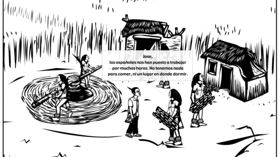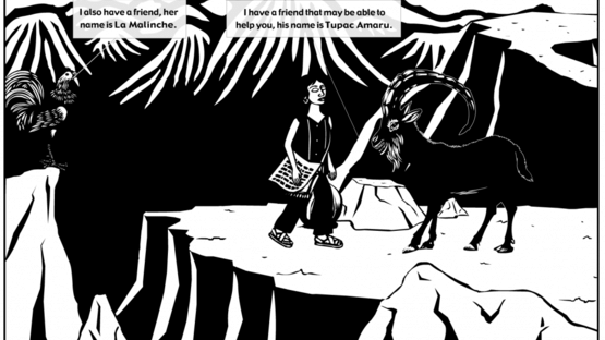 Tropical America is a game that fuses the new world of video games to a compelling past through a journey to unravel the mysteries of the Americas. Your journey begins as the sole survivor of a terrible massacre - you must find four pieces of evidence to bring justice to the memory of your small village. Developed in collaboration with Los Angeles artists, teachers, writers and high school students, the game features a bilingual, thematic gameplay, accompanied by an online database of educational resource materials, source texts and imagery.