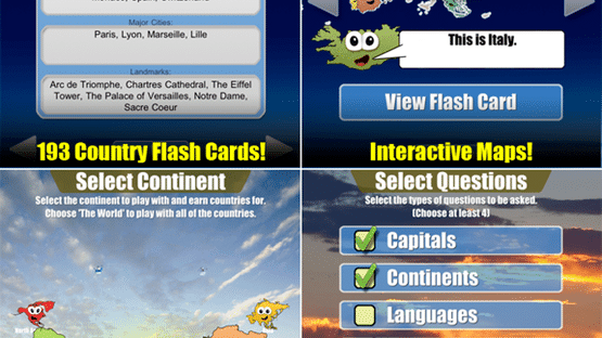 Stack the Countries makes learning about the world fun! Watch the countries actually come to life in this colorful and dynamic game! As you learn country capitals, landmarks, geographic locations and more, you can actually touch, move and drop the animated countries anywhere on the screen. Carefully build a stack of countries that reaches the checkered line to win each level. You earn a random country for every successfully completed level. All of your countries appear on your own personalized maps of the continents. Try to collect all 193! As you earn more countries, you begin to unlock the free bonus games: Map It! and Pile Up! Three games in one!