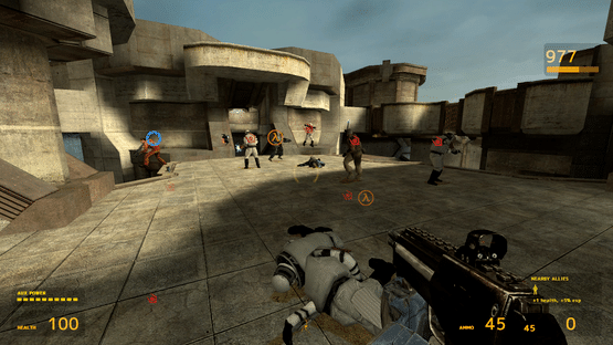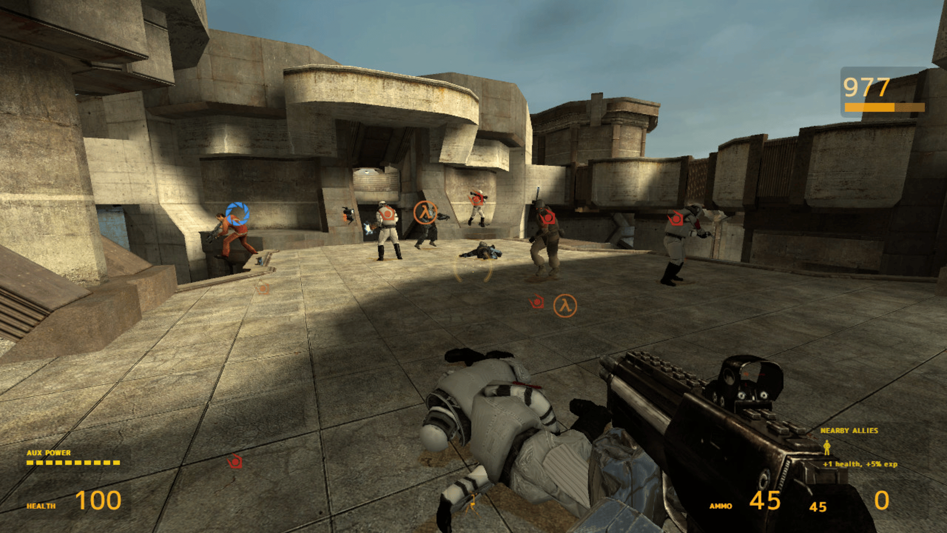 Modular Combat is a role-playing shooter based in the Half-Life universe. Factions face off against each other, and monsters, in the Controlled Combat Testing Facility, which is monitored by a super-computer known as BoSS.