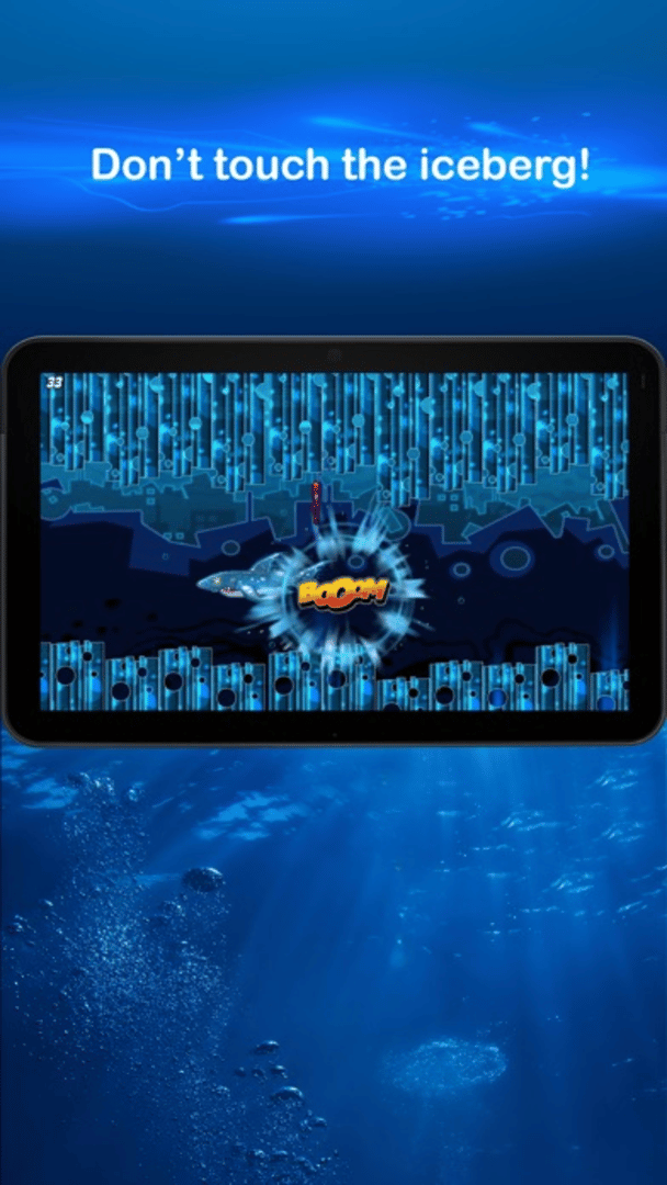 How quick are your reflexes? Are you ready to explore the depths of the sea with all its dangers and adventures? Then Greyheadstudio’s latest aquamarine is your best bet! In aquamarine you’re the helmsman of a little yellow submarine, trapped deep down in the ocean. You have been tasked with examining the undiscovered parts of the sea and the only way through is in the darkest and most threatening waters. On your journey you will encounter dangerous sea creatures who will try to attack your submarine during your expedition. Beware of Larry the shark, Kraken the octopus, Sammy the jellyfish , Bob the bigfish and many other aquatic predators. Yet your deadliest enemy of all is the giant iceberg located under the water, once you touch it , your travel is over and you have to start your tour all over again. Your goal throughout the game is to travel deep into the waters as far as you can without touching the rocks and encountering the sea’s hooligans. So how quick are your reflexes ? Ready to get frustrated and let aquamarine play around with your nerves and patience? Don’t be a wuss and see how long you can last in the dangerous world of aquamarine!
