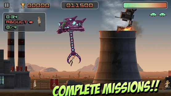 Take control of a UFO with a retractable claw and destroy the puny humans! Terrorise them anyway you like: Toss them, crush them, abduct them - it's up to you.