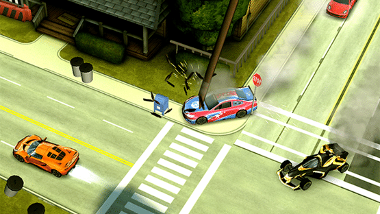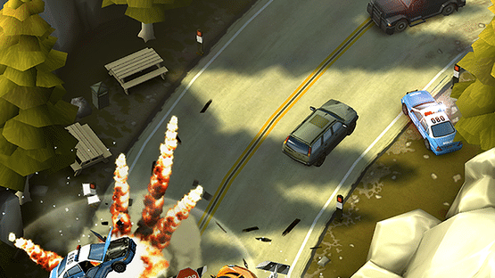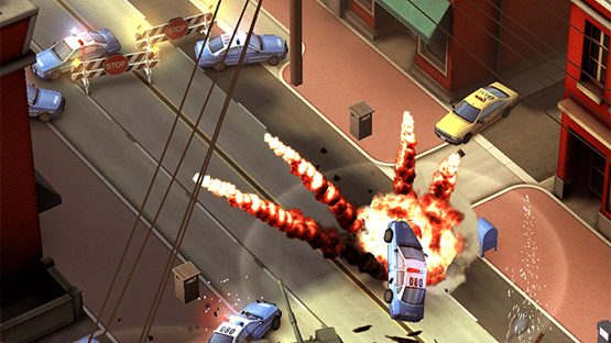 Named as one of TouchArcade's Top 10 Games of the year 2013. From the makers of Smash Cops – crash through America in the craziest road race to hit the App Store. Power up to faster cars, get the edge with getaway gadgets and outrun the cops as you speed to the state line. Well, almost. Whichever route you take through an ever-changing world of dirt tracks and dusty logging towns you can crash and bash your way through smashable scenery in the most intense display of destruction you have ever seen. Make sure you’re always ahead of the game (and the cops) with cool car upgrades. Start with a puny compact and make it awesome with extra speed, handling and strength. And when you start earning big, you might just get your hands on the fastest road car on the planet, the stunning Hennessey Venom GT. What crazy road race would be complete without a TV chopper hovering overhead? The further you get and the more you smash, the bigger the TV ratings and the more cash you earn. Play against your Facebook and Game Center friends to see who can become the most famous Bandit on network TV. Before you head off you get to choose something to help you along the way. Stinger-proof tires, the 'Stunner' car taser and even a tank are available to give you the edge over the relentless Sheriff McBride and his deputies. Innovative one-finger control makes it super easy to drive, drift & spin your car, and unleash those helpful gadgets - no matter where you’re playing. The Smash Bandits race organisers don’t think that simply out-running the cops is a big enough problem, so they’ve put together over 100 challenges where you can test your driving skills to the limit.