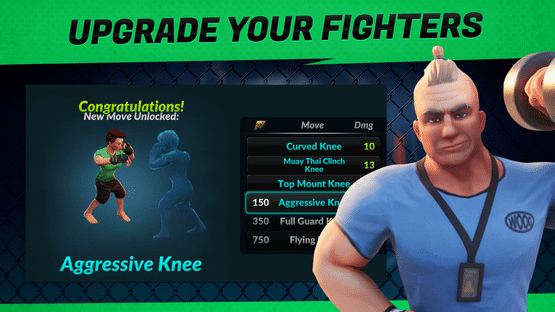 Make your way in the world of MMA Management - hire trainers, purchase gyms and fill them with state-of-the-art equipment, plan out your fights, pick up coaches that know their way around a ring, and of course, recruit your very own champions in the making! Whether you’re going for a tanky heavyweight or an agile lightweight, the dynamic planner has you covered. Plan ahead and create a specific game plan to show off in the ring. Create a new plan for each fight so you’re never caught off guard. With each new opponent, your fighter will learn and improve. Train them with new skills in your very own gym. As your fighter trains in different skills, they’ll learn new and improved offensive moves.