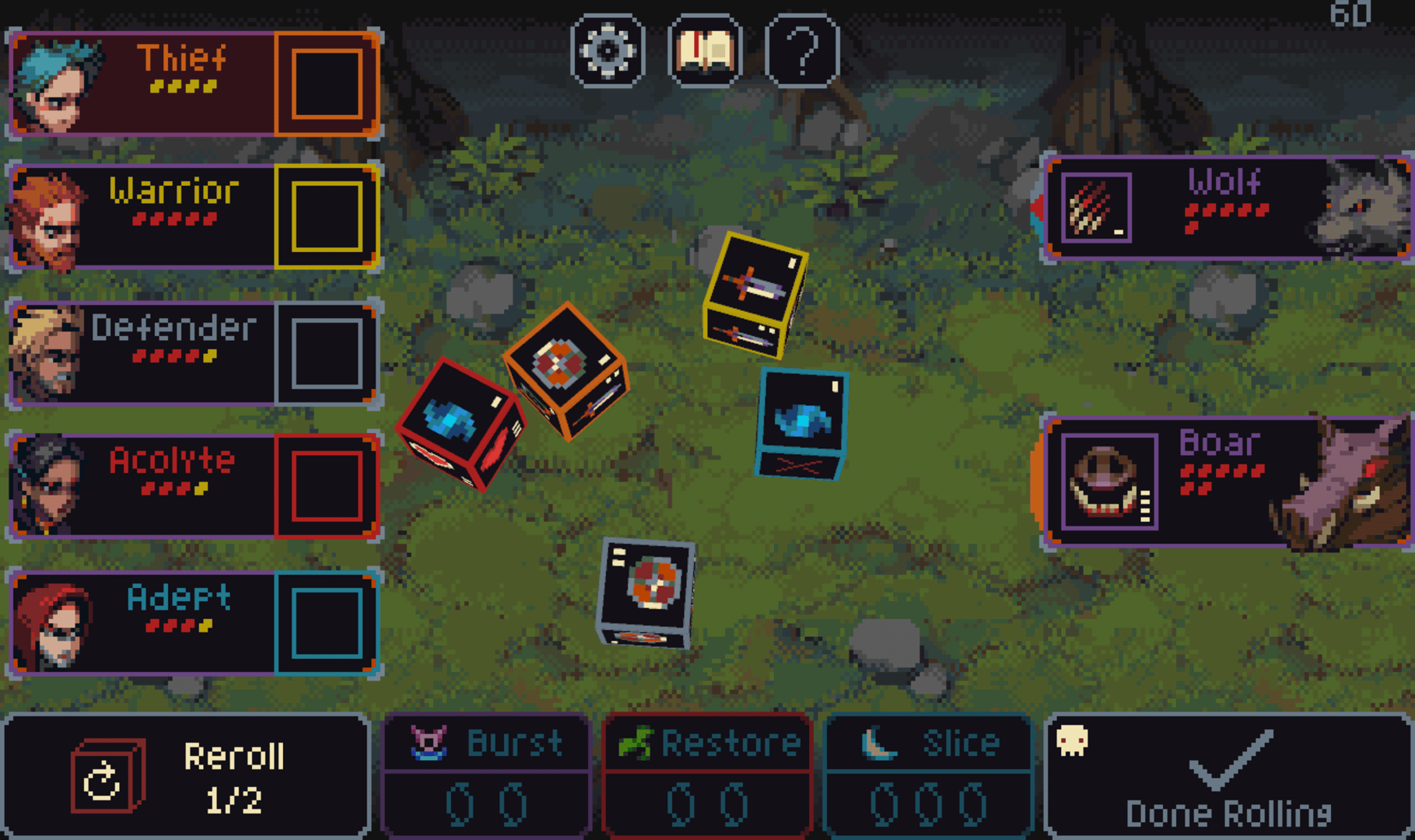 Take control of 5 heroes, each with their own unique dice. Fight your way through 20 levels of monsters and try to take on the final boss. If you lose a single fight you have to start over so be careful (and lucky!).