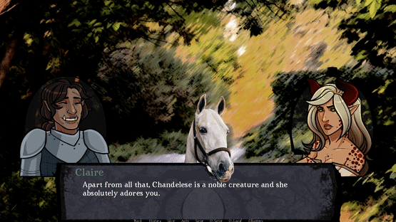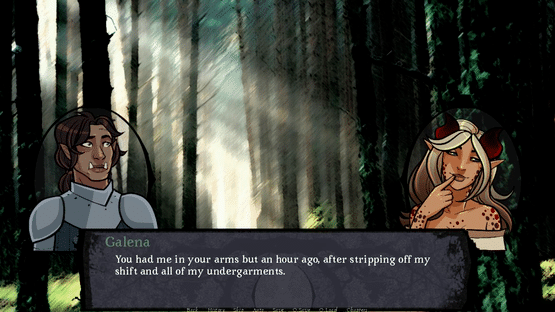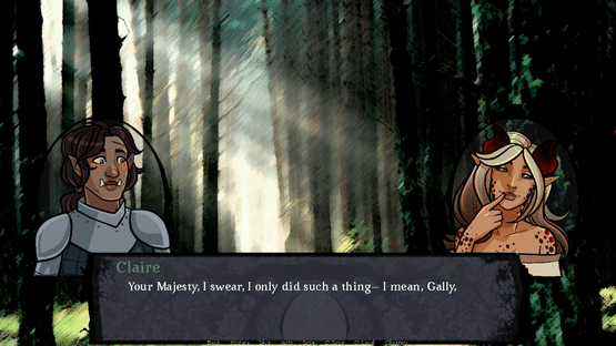 "An Oath in Kind" is a kinetic novel about a dethroned demon queen and the one and only knight who remained loyal after her fall. When Claire finds her queen bleeding across the floor of a forest hollow, she swears to herself that she will fulfill her oath to see Galena to safety... even if Galena would have rather been left there in the mud.
