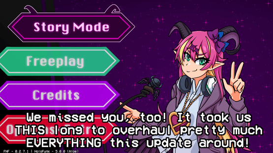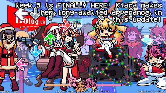 Hololive Funkin', or HoloFunk for short, is an overhaul mod for Friday Night Funkin' built by a small team of people on a version of Kade Engine heavily modified to the point of being nearly-unrecognizable, dubbed Myth Engine. It features brand new songs, new opponents, and whimsical new settings based on the world and characters of hololive.