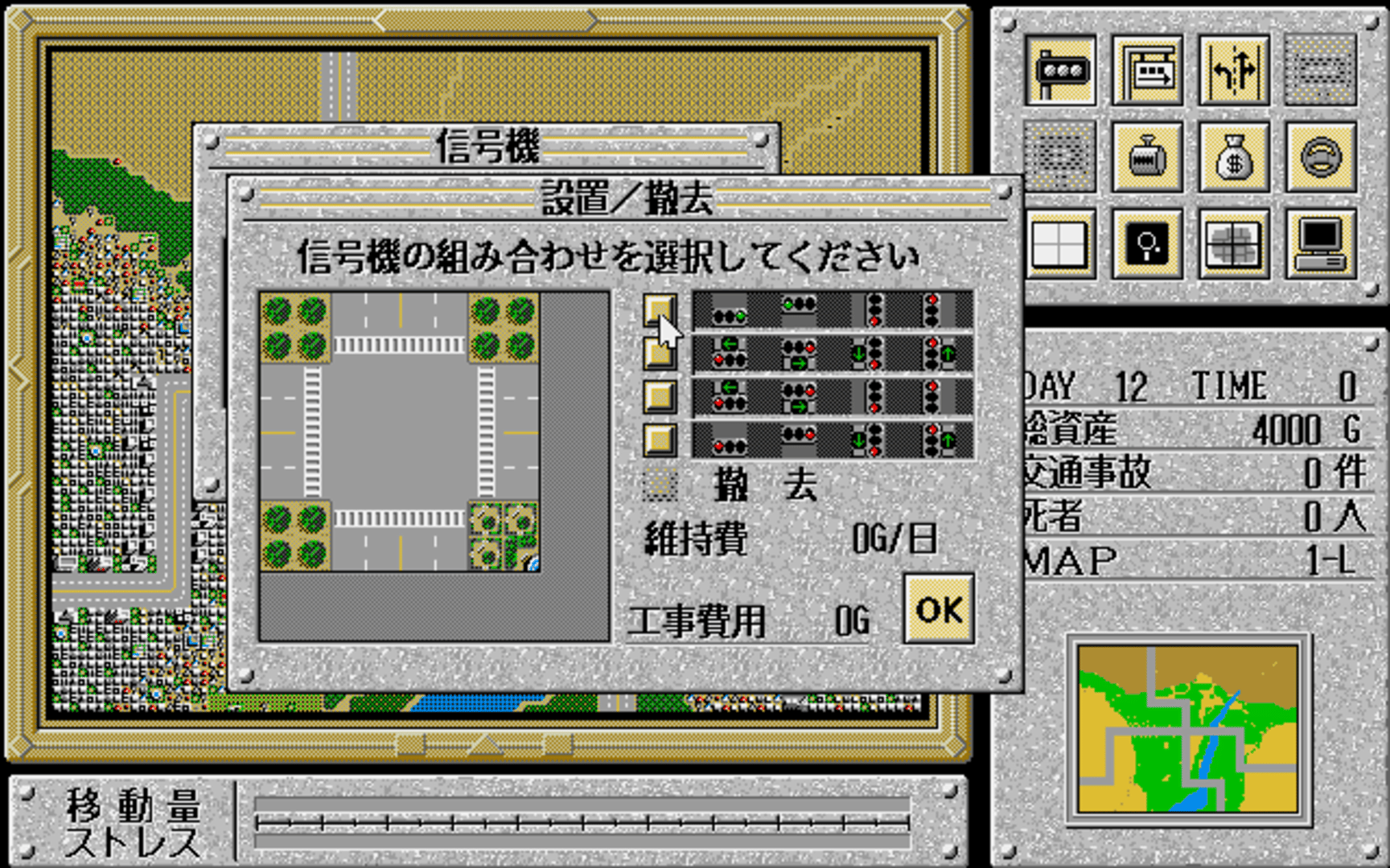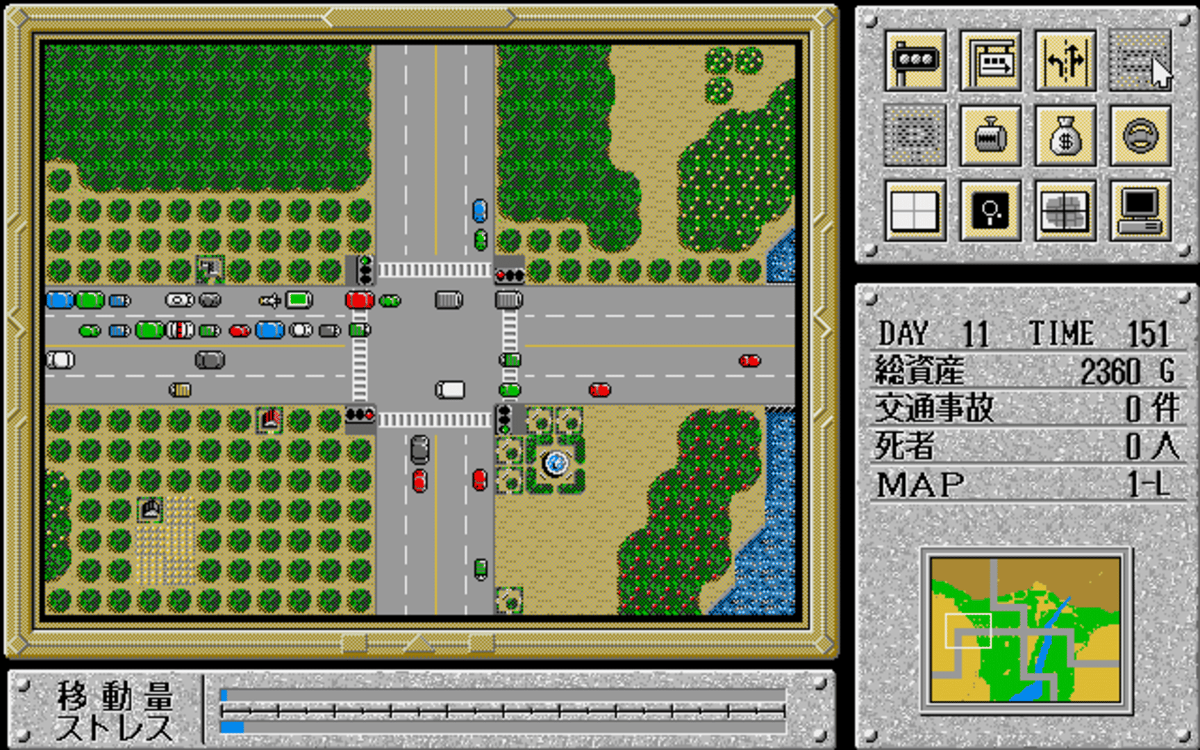 Traffic Confusion is a traffic congestion simulation game where the goal is to clear the the map of cars which each has their own destination while keeping accidents and potential deaths to a minimum. Stress among the drivers will build up while they're waiting stuck in traffic or congestion is too high etc. You lose the game if the stress level reaches its maximum point.