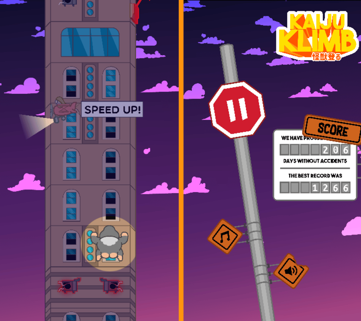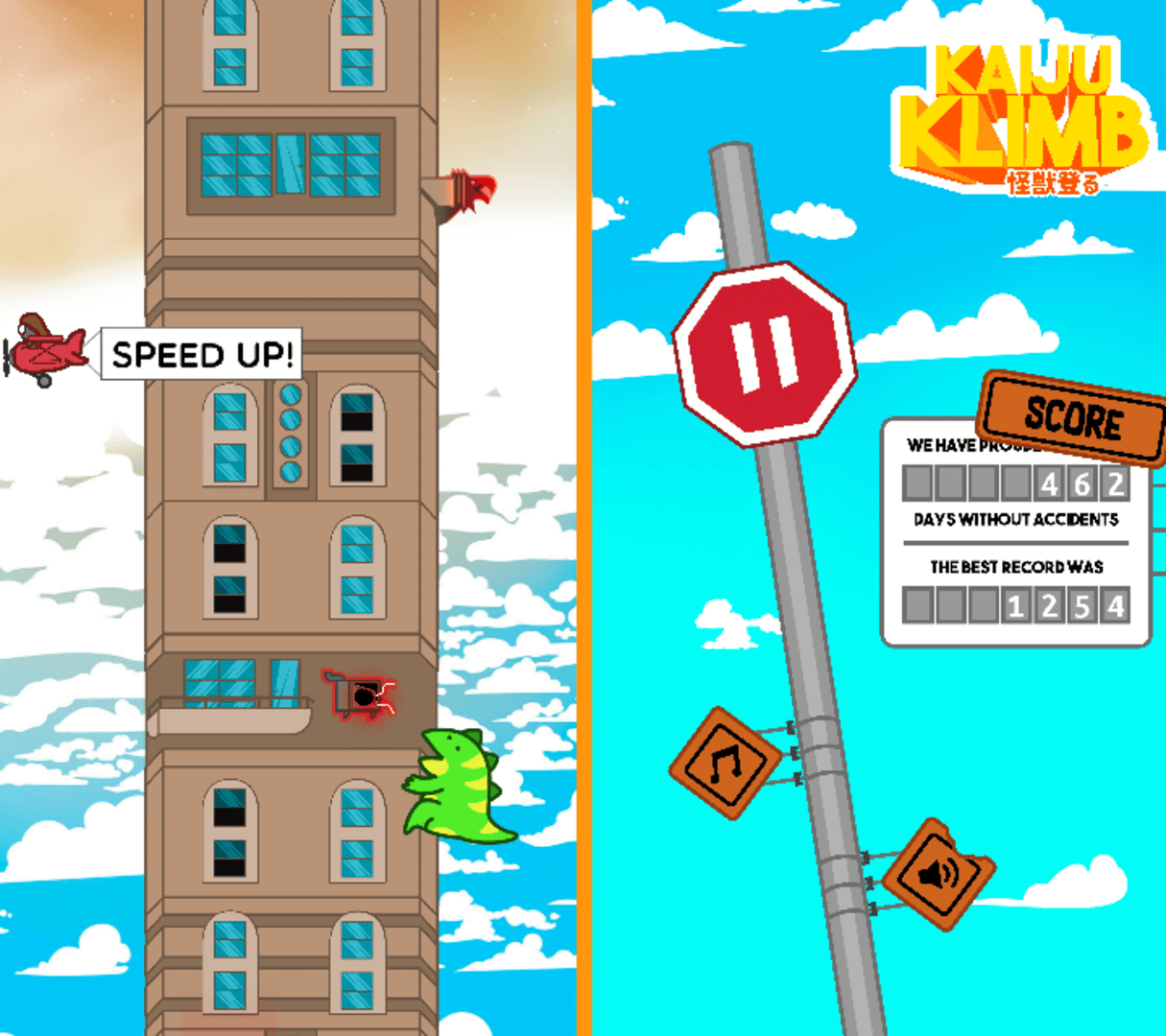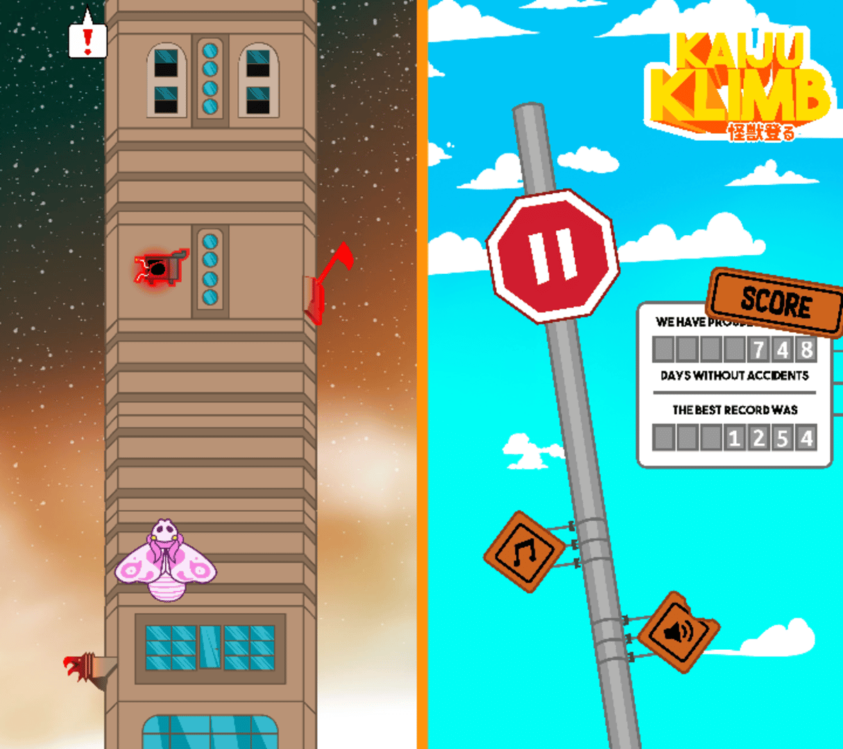 Heavily inspired in the monsters from The PowerPuff Girls, famous giant creatures like Godzilla, King Kong, and Mothra as well as mythology from countless cultures around the world, Kaiju Klimb evokes that addicting gameplay from simple games into a sweet casual style, perfectly setting the mood for the destruction of earth while you relax!