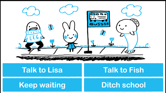Posey's stuck at the bus stop! Help her choose what to do in this sweet & silly cartoon story game!