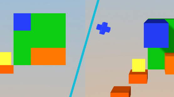 Solid blocks of varied shapes help a flat little square so it can explore their world. Switching POV between 2D and 3D, you control each character in turn.