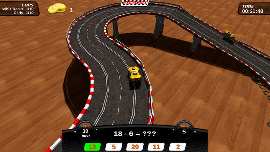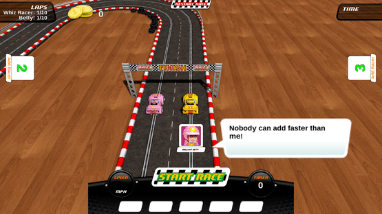 Whiz Racer is a car racing game with a twist. The cars are brain powered! Prove that you have the smarts to defeat Professor E by solving math problems.