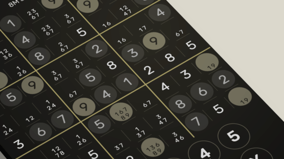 A sudoku game with minimalist design. Includes assist options for validating placements and highlighting where numbers are.