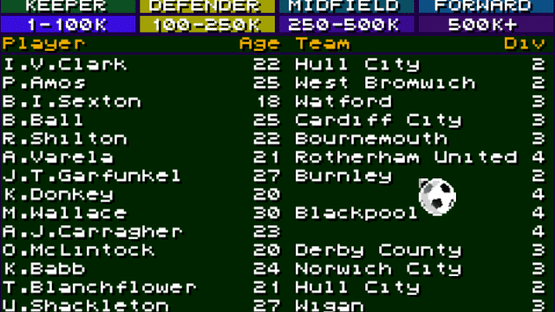 2D arcade managerial football game inspired by Commodore Amiga classic games