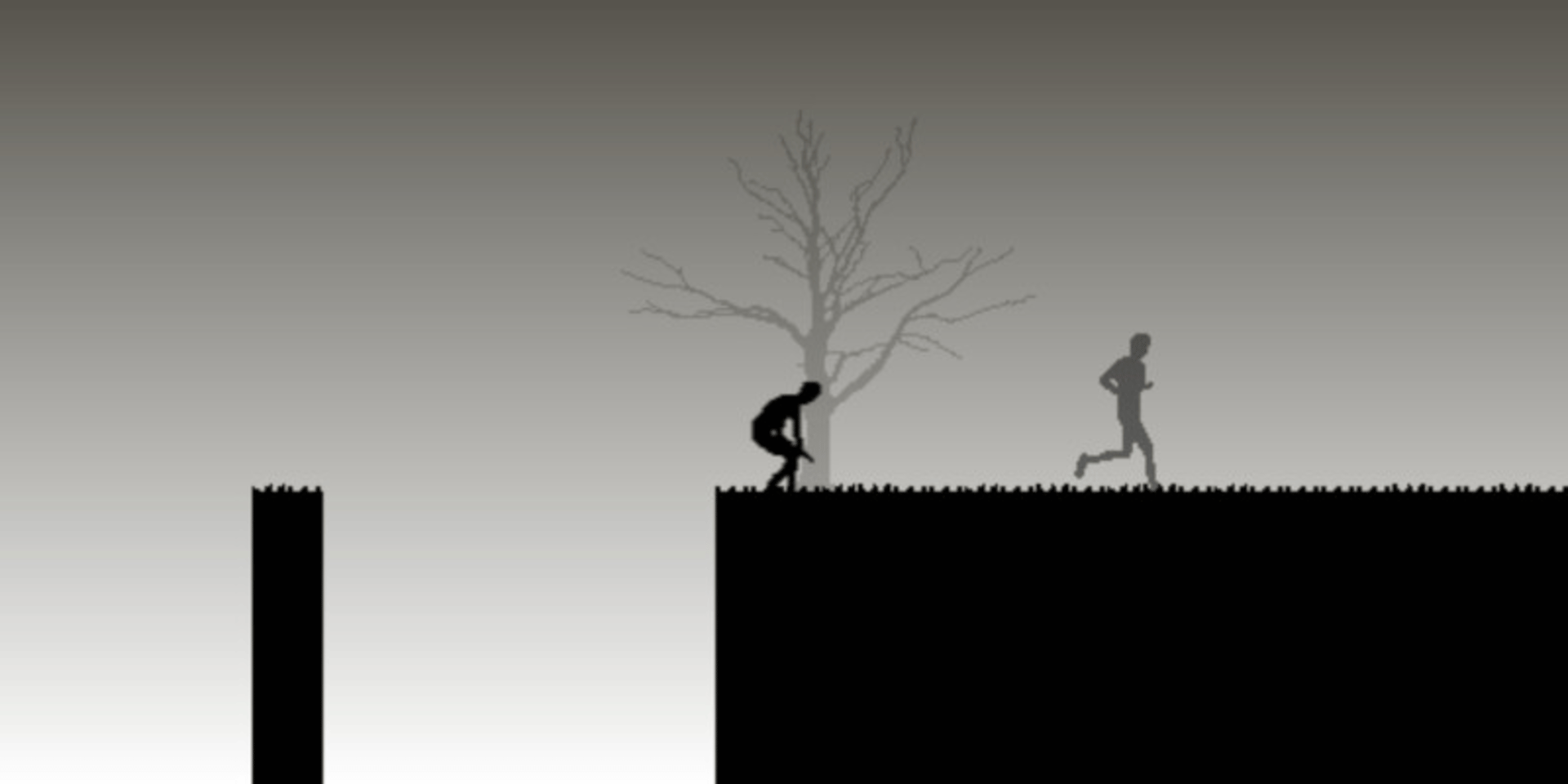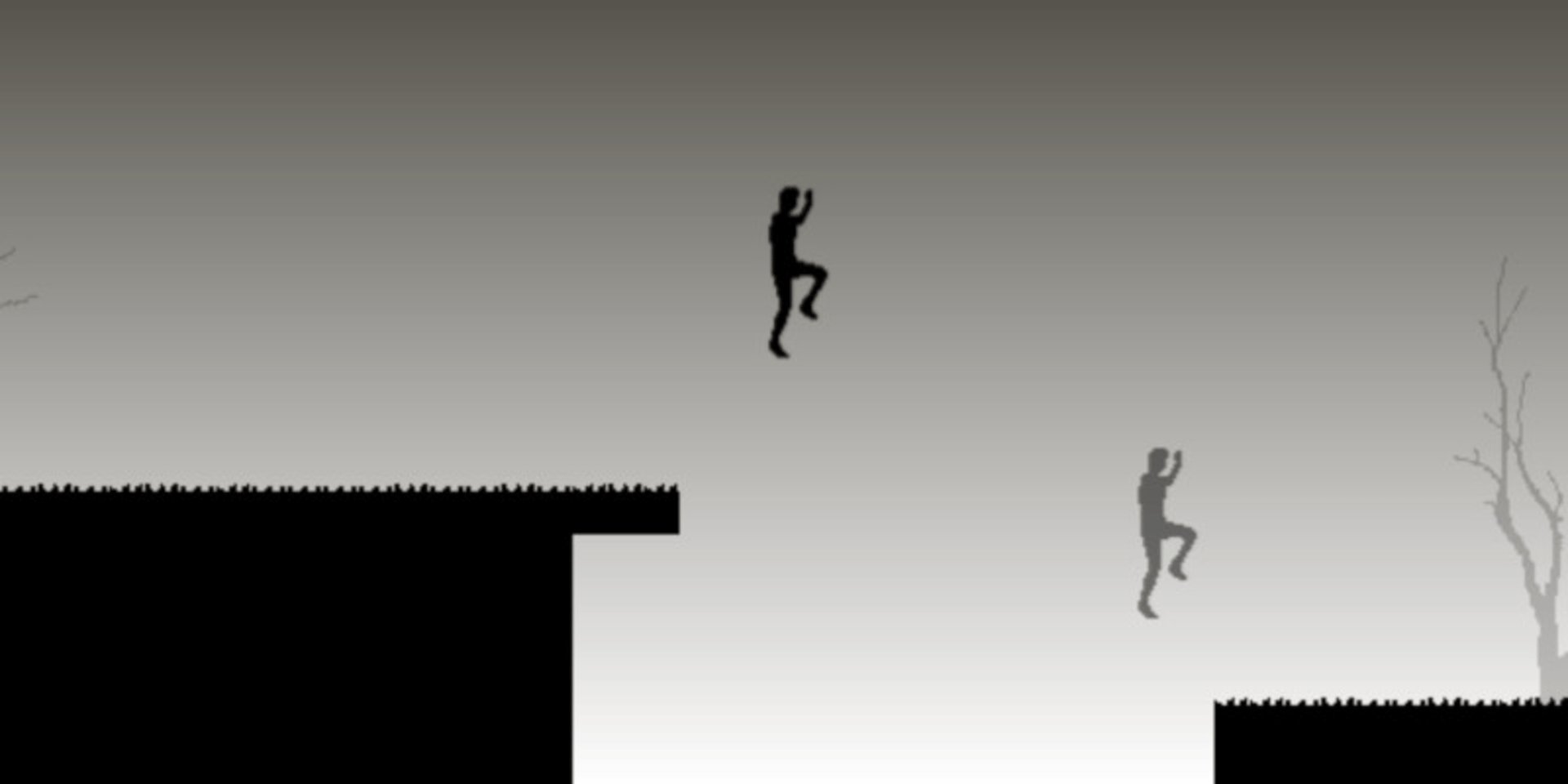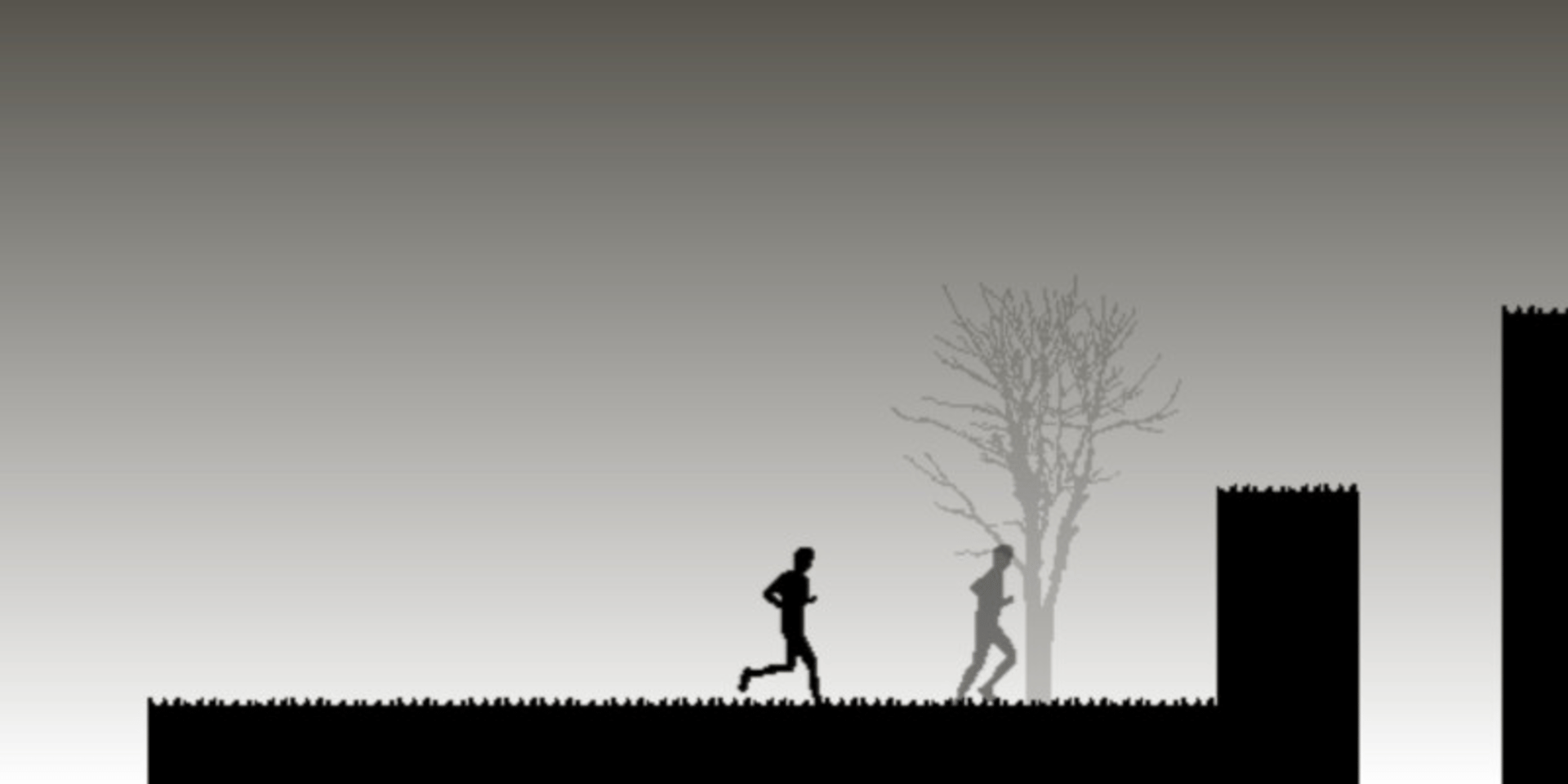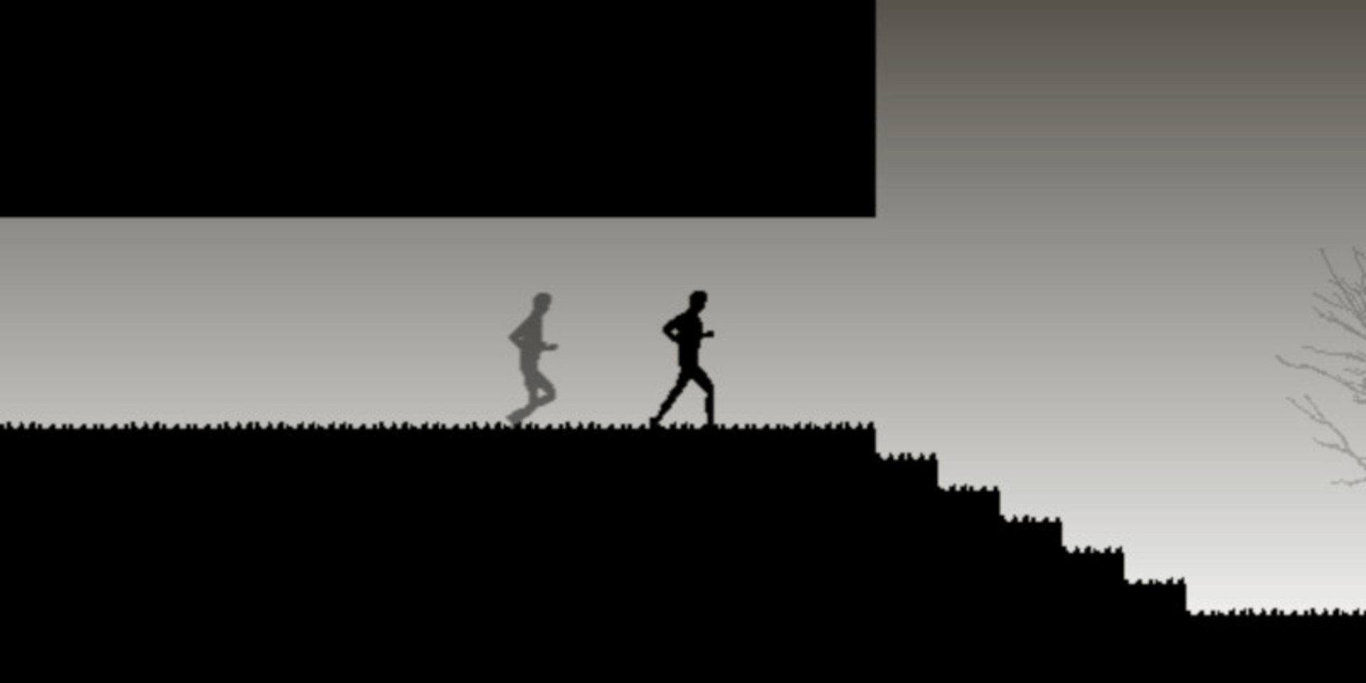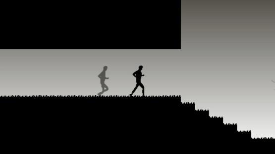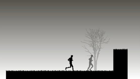 Run against yourself. Once you have run through the level or if you die your doppelganger emerges to race you, running just like you ran before. Winning the race against your doppelganger leads you to race your ever faster self. Use the arrow keys to control yourself. Note that you can also slow down or accelerate during a jump.