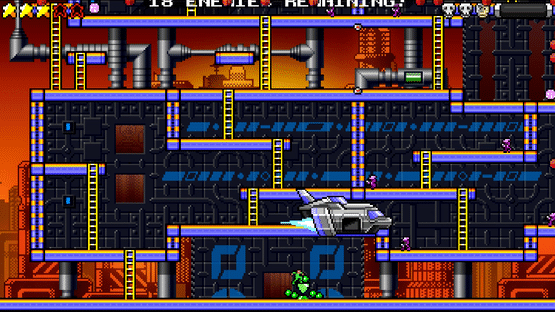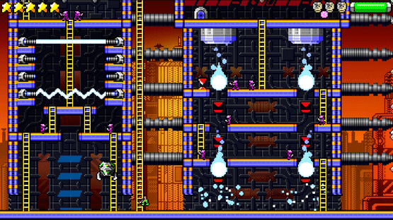 The year is 2145. Earth still burns. Zallagor and his army have been vanquished, but at great cost: the once great cities of Earth lie in ruin, its population hungry for revenge. Zallagor’s home planet of Zerkl has been located. Zallagor has gone, but somebody will rise to replace him. Maybe they already have. The Destructivator is ready – it is time to strike! Take on the role of a tiny super-solider decked out in lime green spandex! Blast and melee your way through hordes of alien soldiers, robots, spaceships, traps, bosses – and more! Fight on foot or commandeer an enemy ship to take out Zerkl’s defenses and ensure that the alien menace won't threaten Earth ever again.
