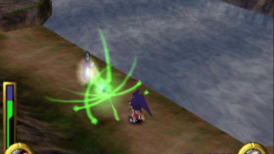 150 years ago, the legendary warrior known as the Brave Fencer Musashi saved the kingdom of Allucaneet from the evil Wizard of Darkness. Now, his spirit is reincarnated in a young, rather short-tempered boy. Fillet, the princess of Allucaneet, summons the reluctant hero to the palace and gives him the powerful sword Fusion, which he needs to defeat the evil Thirstquencher Empire. It soon turns out that the Empire is after another legendary sword, Lumina, so Musashi's first task is to get it before the bad guys do!.. Brave Fencer Musashi is an action game with strong RPG elements. Controlling Musashi, the player explores the pre-rendered backgrounds from third person view (similarly to Final Fantasy VII), visiting towns, talking to NPCs, etc. There is a day/night cycle in the game, which is manifested in the schedules of NPCs and/or monsters, as well as Musashi's fatigue level, which increases if he doesn't sleep enough. Musashi uses the two swords, Fusion and Lumina, to fight his enemies. The two swords have different properties: while Fusion behaves more or less like a traditional melee weapon, Lumina needs to be imbued with various elemental items in order to unleash powerful attacks.