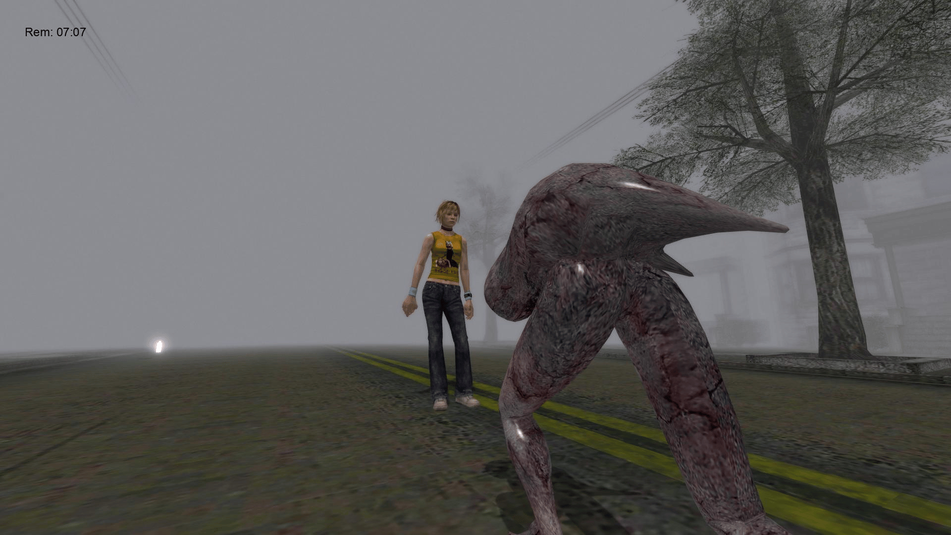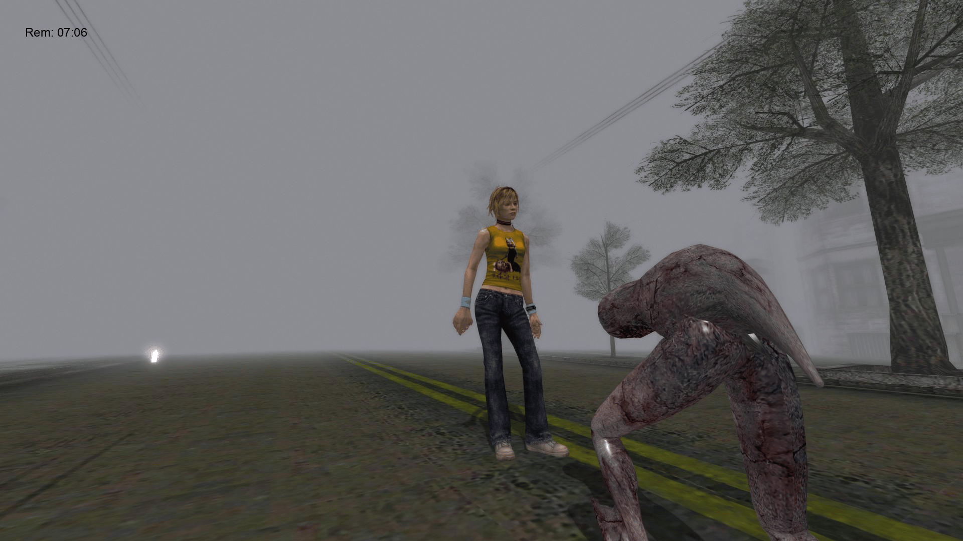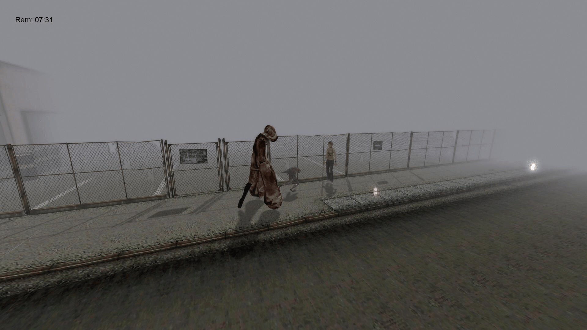 Silent Hill 2.5 is a fangame developed by s5zone intertwining Silent Hill 2 and Silent Hill 3. You appear as Heather at the same place where James in Silent Hill 2 went to the city. While you browse through locations you meet Valtiel, who tries to open a gateway to the second part of the map for you. In order for him to do it, you must collect bunnies scattered all over the map. The more bunnies you pick up, the more monsters come at you. When you pick up all bunnies, you run to the final door and the second part of the game begins. During the final run to the end, Alessa appears and shows you the direction you should go towards the end. The events of this game happen after Silent Hill 3, when Heather tries to leave Silent Hill but for some reason, she must go back to it.